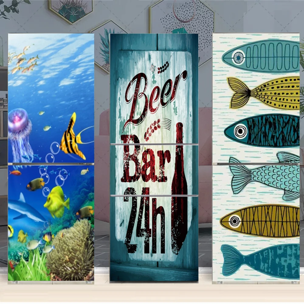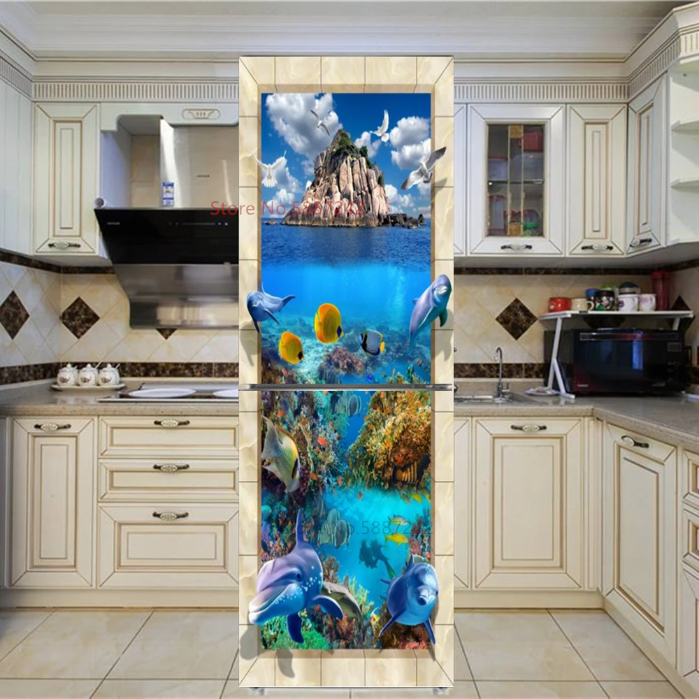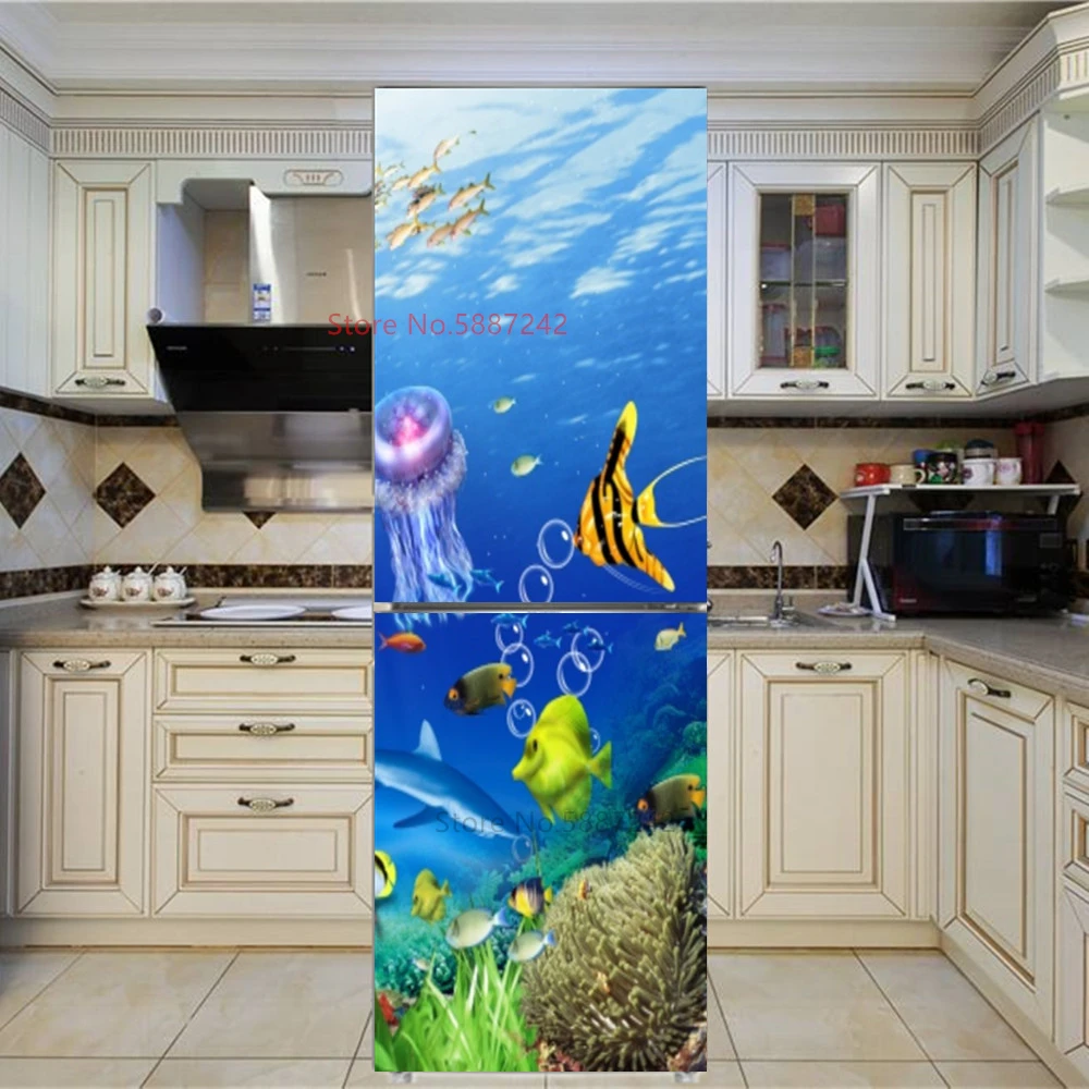 Океан рыбы наклейки на холодильник 3D обои с изображением холодильника виниловая пленка самоклеящаяся Крышка для всей двери декор кухонная наклейка постер