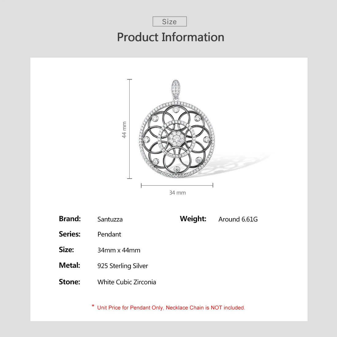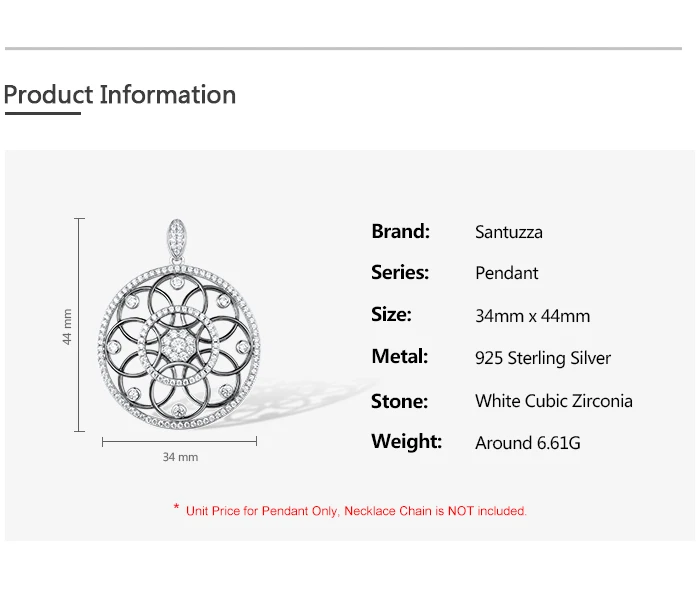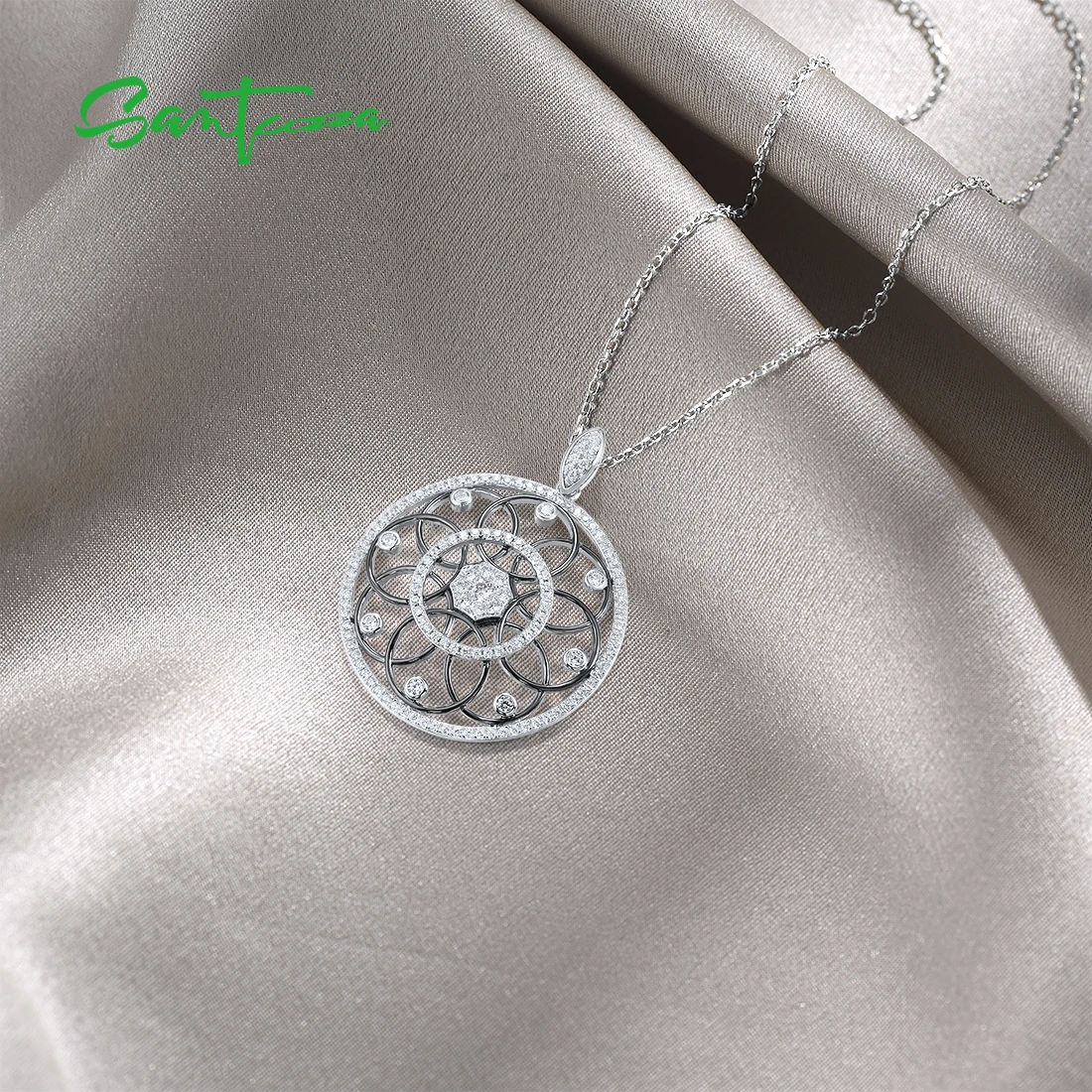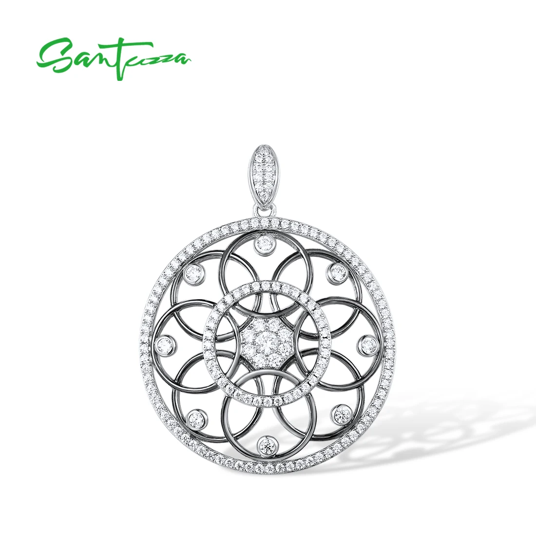 Женская подвеска-калейдоскоп SANTUZZA, из серебра 925 пробы с белым блестящим кубическим цирконием, модные ювелирные украшения