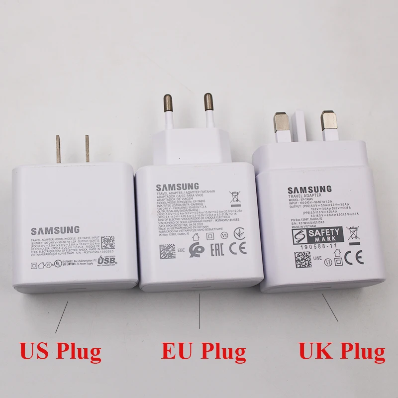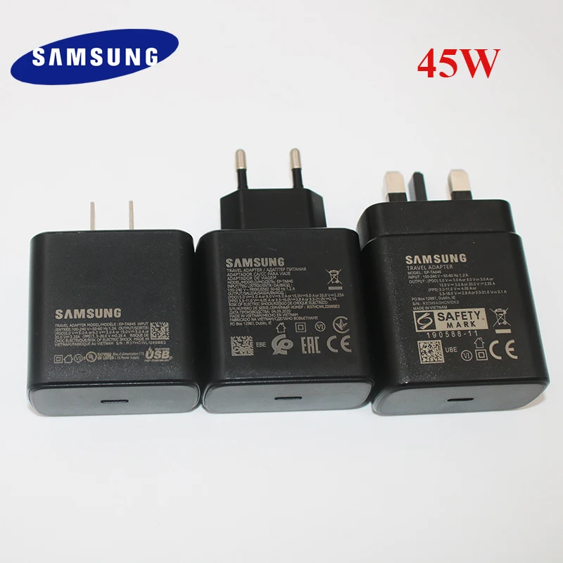 Samsung Оригинальное 45 Вт USB C супер Адаптивное быстрое зарядное устройство для GALAXY S20S21 Ultra S21FE Note20 Plus EP-TA845 A72 Note10 +