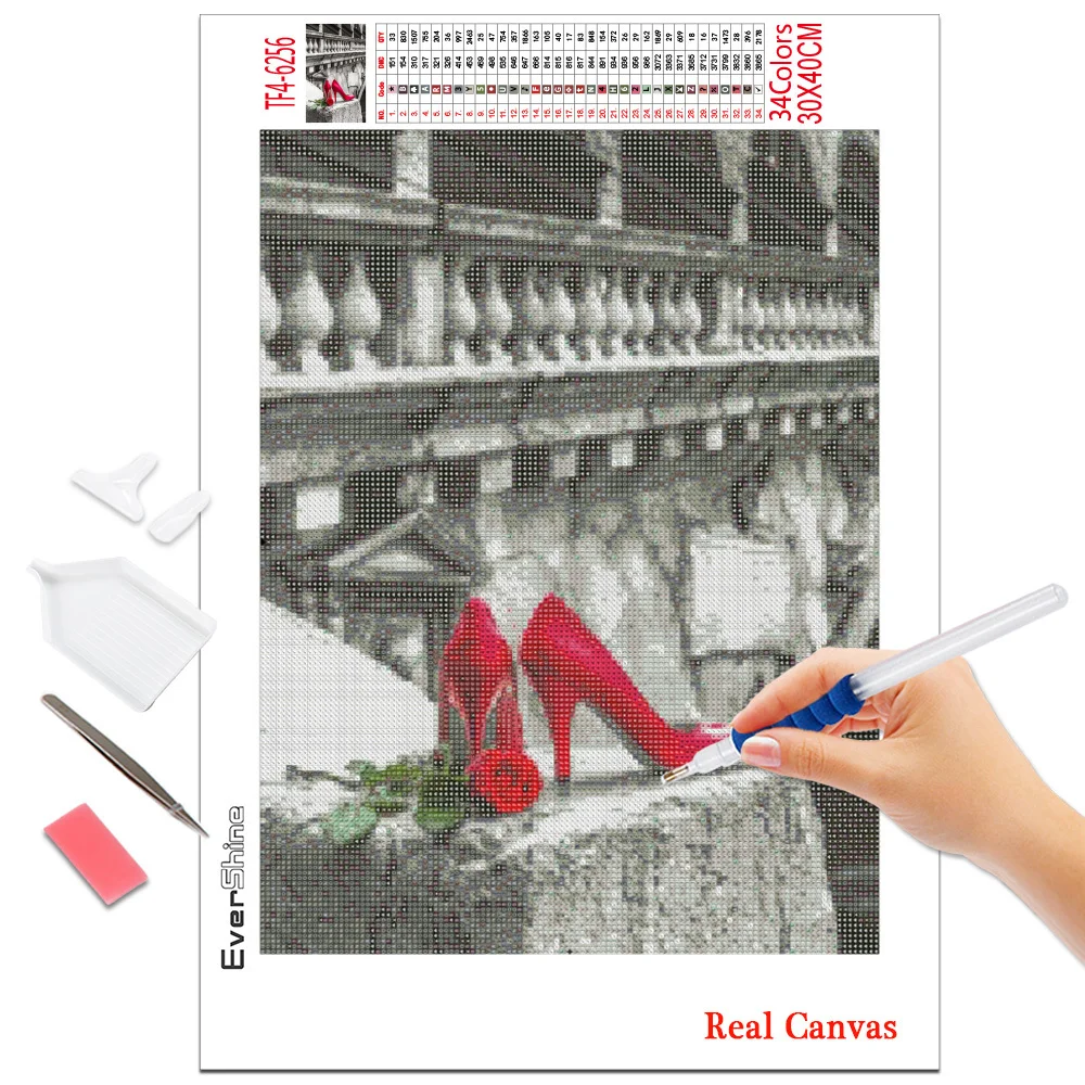 Evershine Алмазная вышивка улица картина стразы полная площадь Круглый Алмазная мозаика Черный Красный Алмазная Живопись цветок Подарки ручной работы