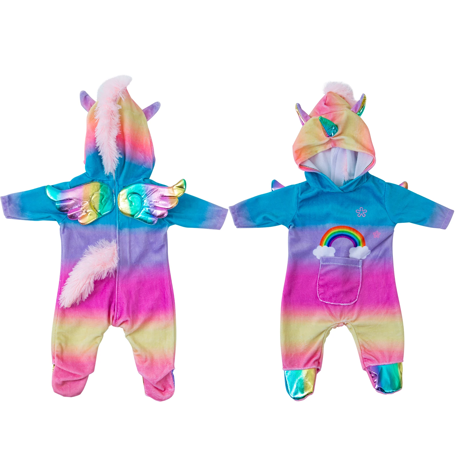 Лидер продаж 2020, цельный костюм для новорожденных 18 дюймов, аксессуары для кукол, одежда, крылья единорога, костюм для малыша, подарок на день рождения
