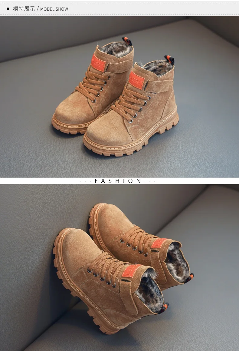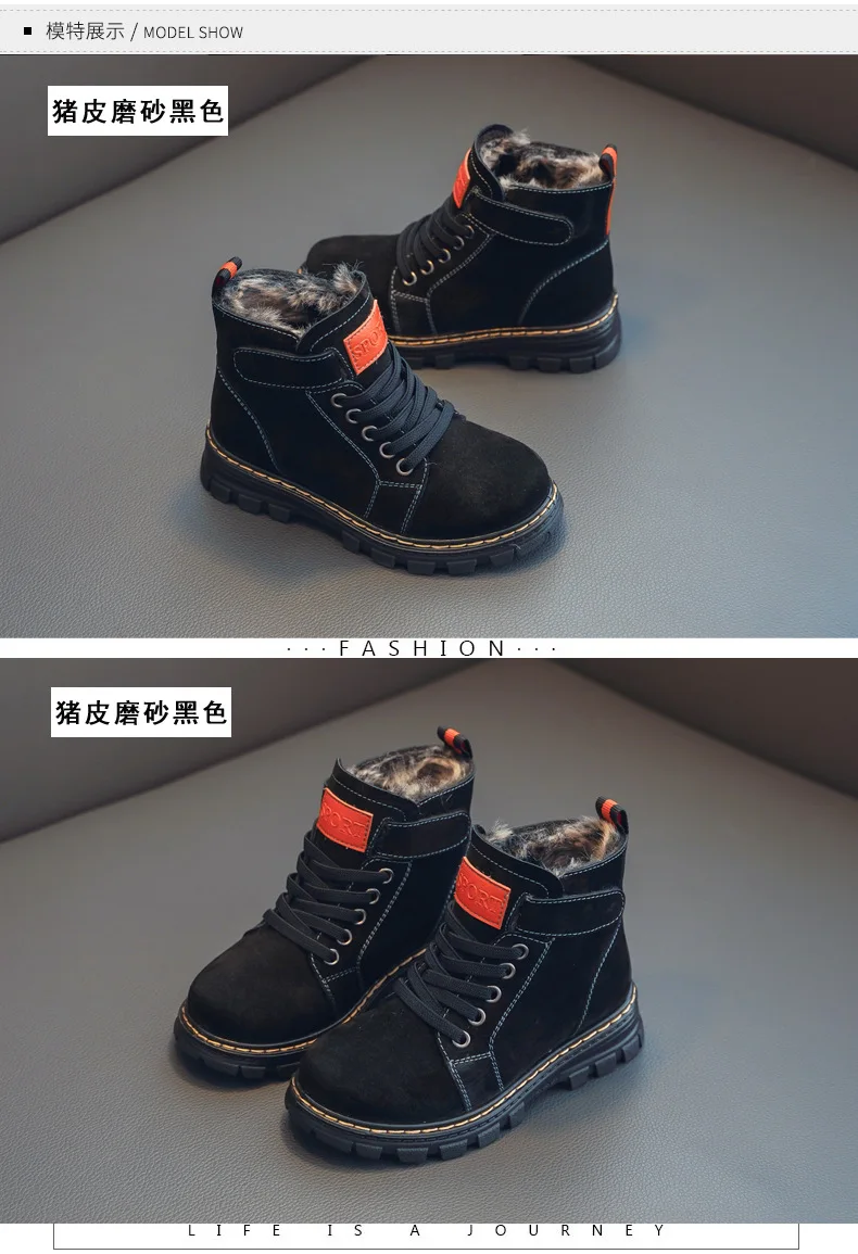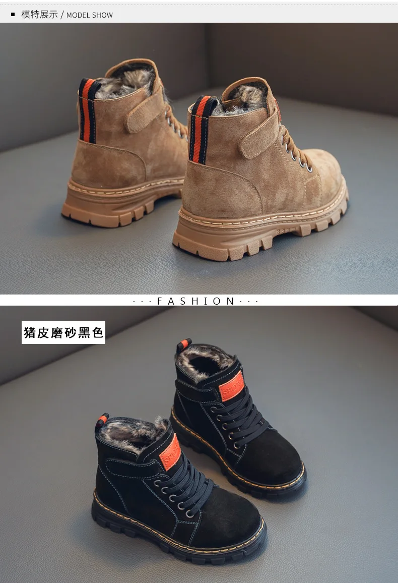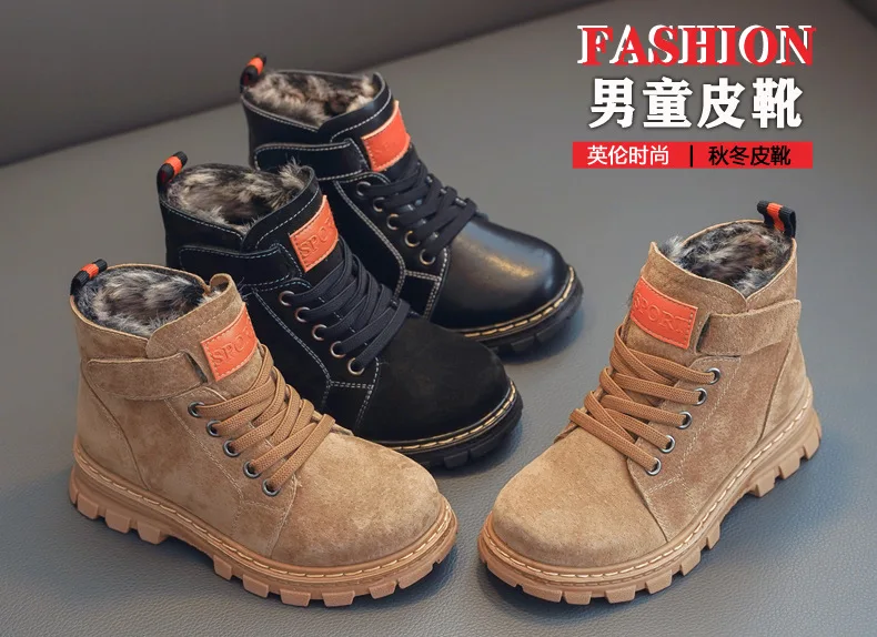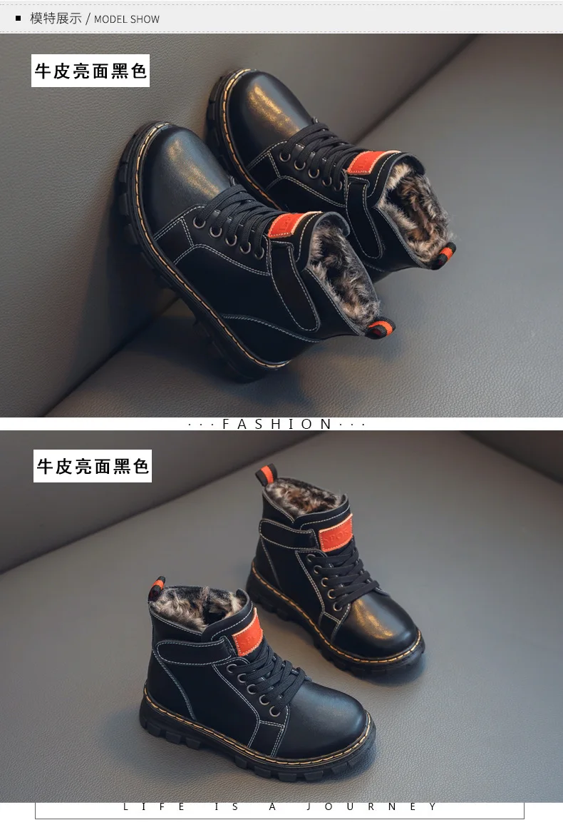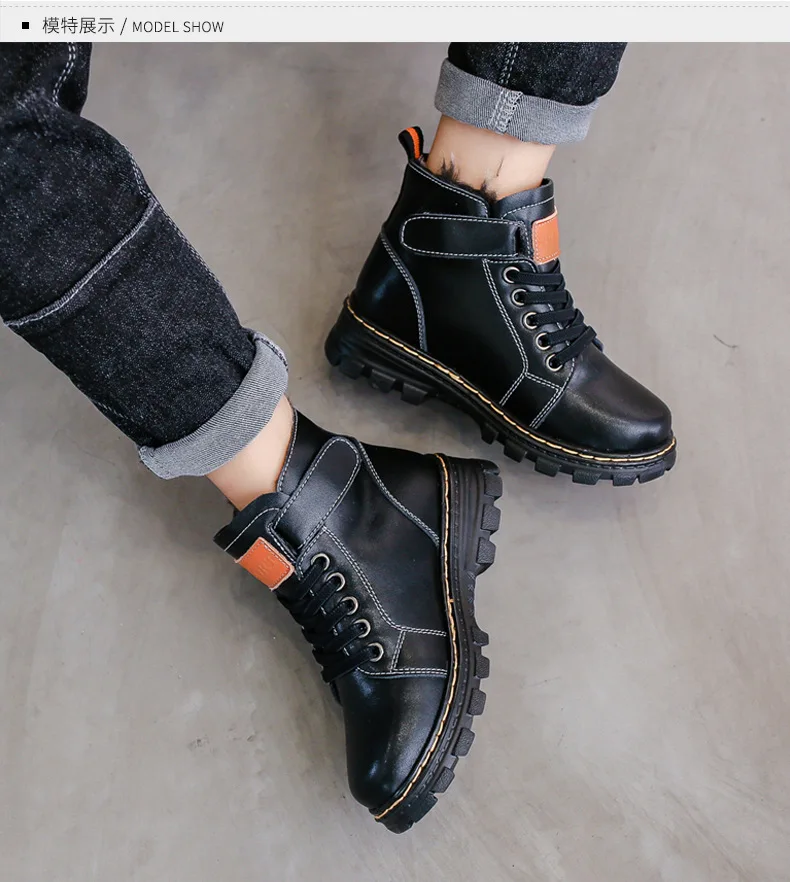 Ботинки детские из ПУ кожи, на толстой нескользящей подошве, водонепроницаемые