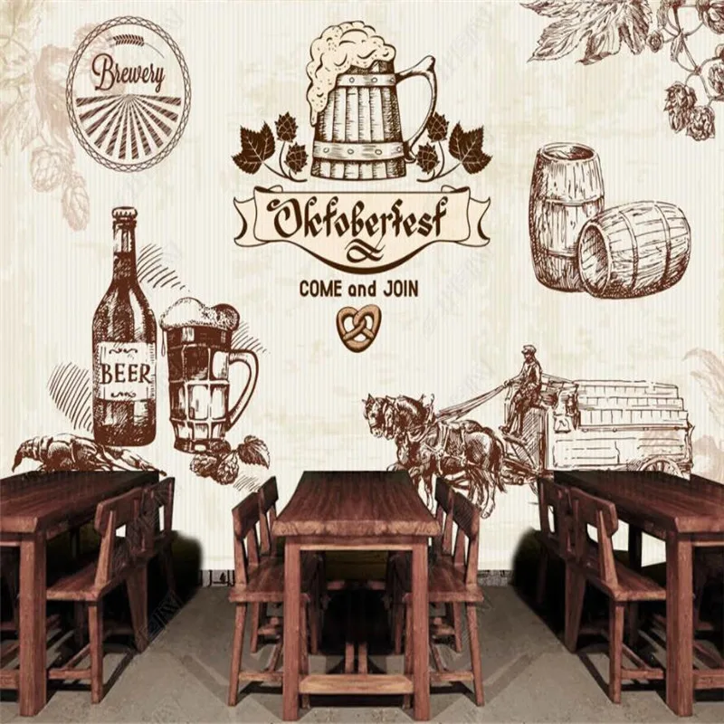 Настенная бумага на заказ с ручной росписью пива, бар, KTV, рестора...