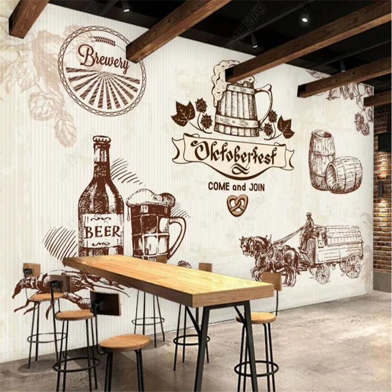 Настенная фотобумага на заказ с ручной росписью пива в баре KTV, промышленный декор, самоклеящаяся настенная бумага, винный бочонок, фотобумага для ресторана