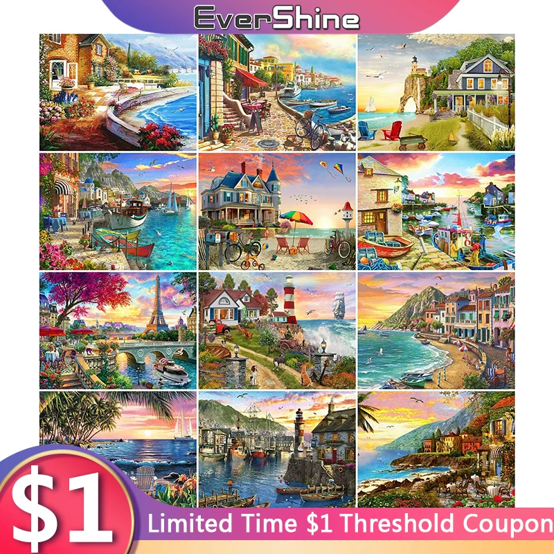 Evershine Алмазная вышивка дом картина стразы полная площадь Круглый Алмазная мозаика Приморский Алмазная Живопись город Подарки ручной работы