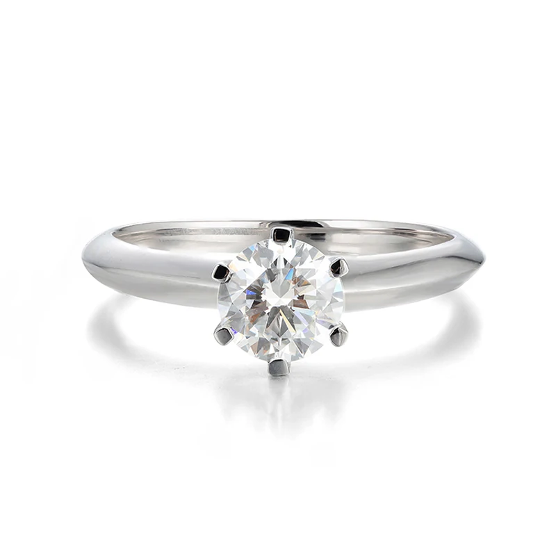 Женское кольцо из 18-каратного белого золота, с круглым фианитом 1,0 карата