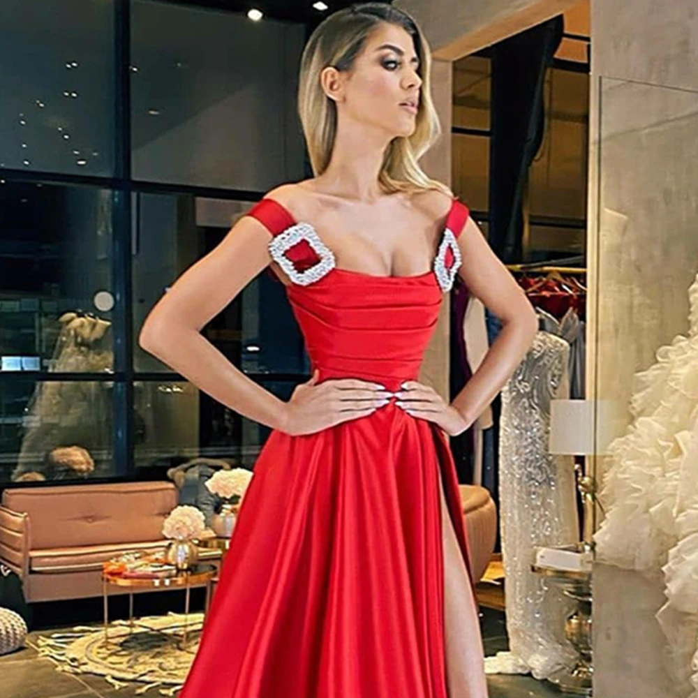 Женское вечернее платье без бретелек, красное ТРАПЕЦИЕВИДНОЕ ПЛАТЬЕ на пуговицах с разрезом сбоку, модель 2022 года