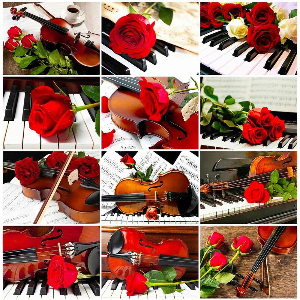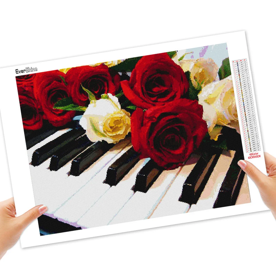 EverShine 5D Алмазная мозаика пианино полноразмерная алмазная живопись цветок вышивка крестиком Роза картина вышивка ручной работы подарок