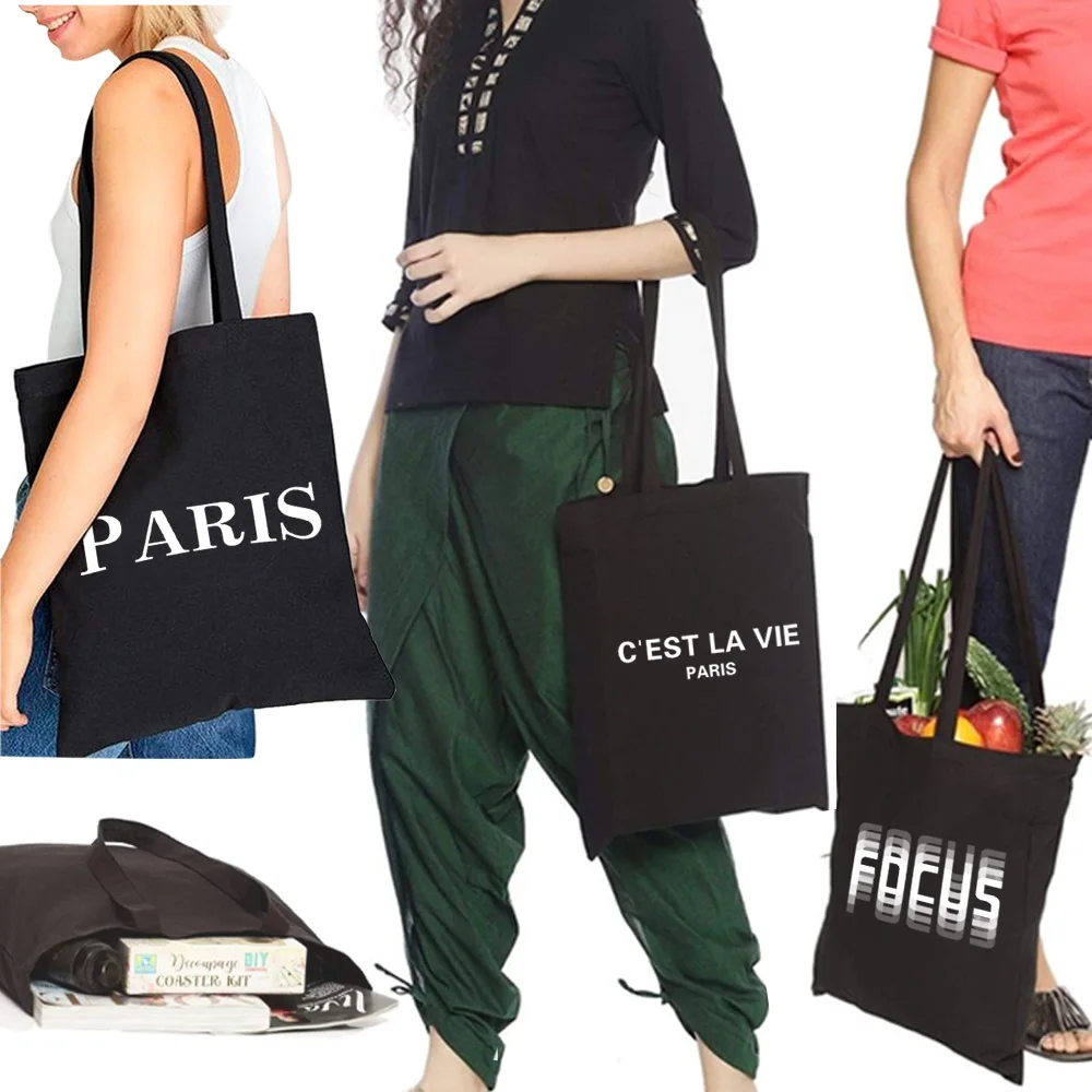Женская сумка для покупок, Холщовая Сумка-тоут с текстовым узором для девушек, сумки для путешествий, женские экологически чистые многоразовые сумки на плечо, вместительные сумки