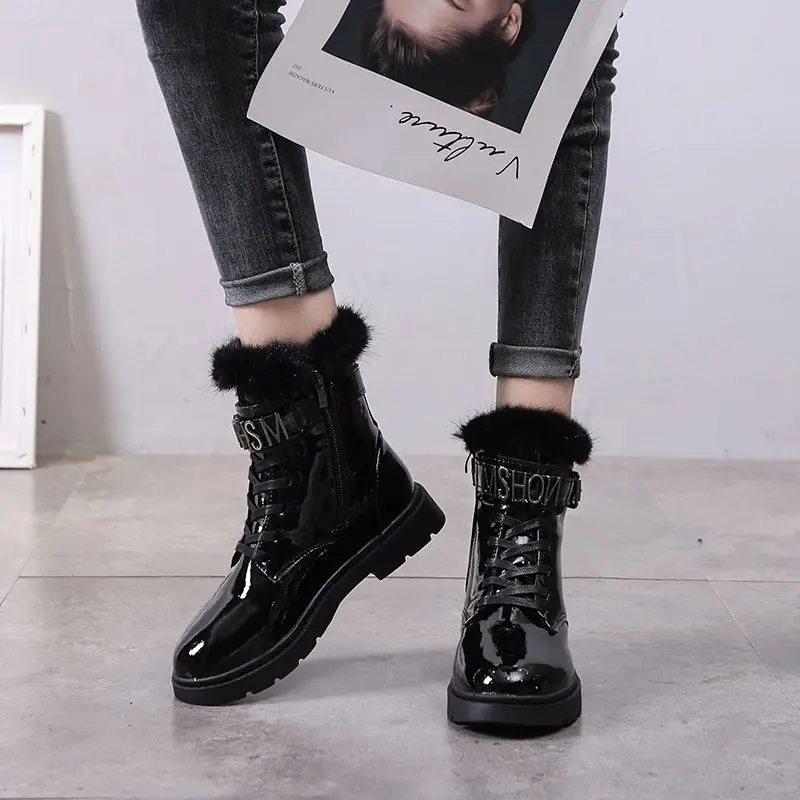 Теплые зимние сапоги, женские зимние меховые сапоги, новинка 2021, на толстой подошве, с хлопковой подкладкой, бархатные толстые короткие сапоги, сапоги из хлопка
