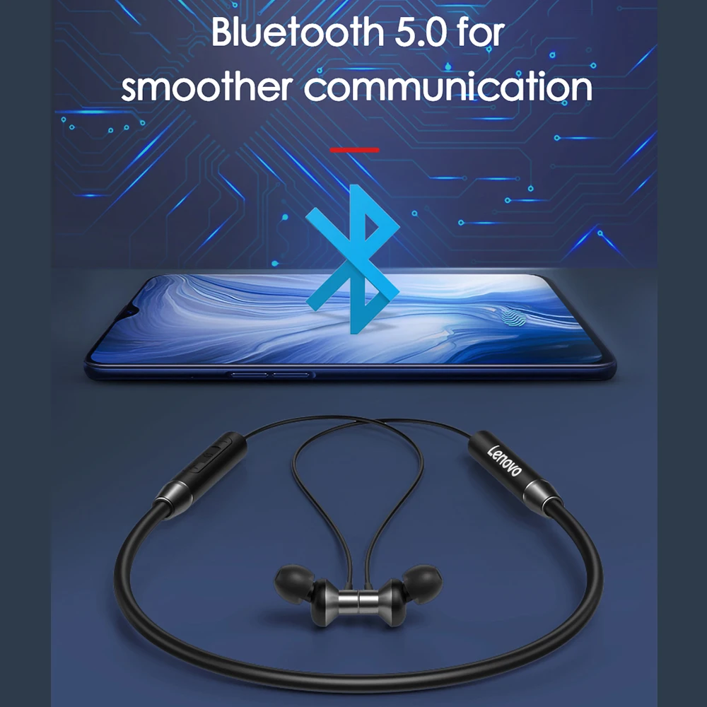 Беспроводные Bluetooth-наушники Lenovo HE05, магнитные наушники с шейным ободом, водонепроницаемые спортивные наушники с микрофоном и шумоподавлением