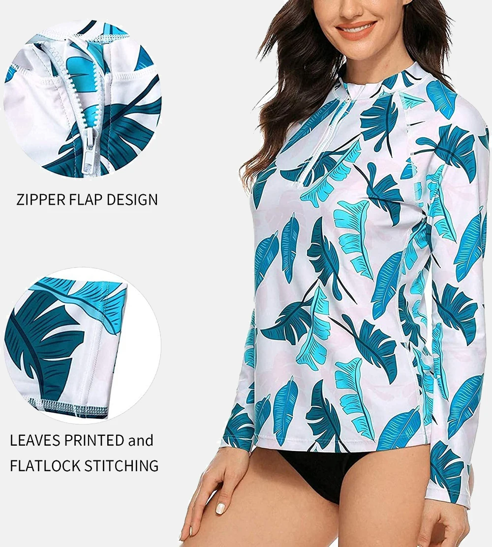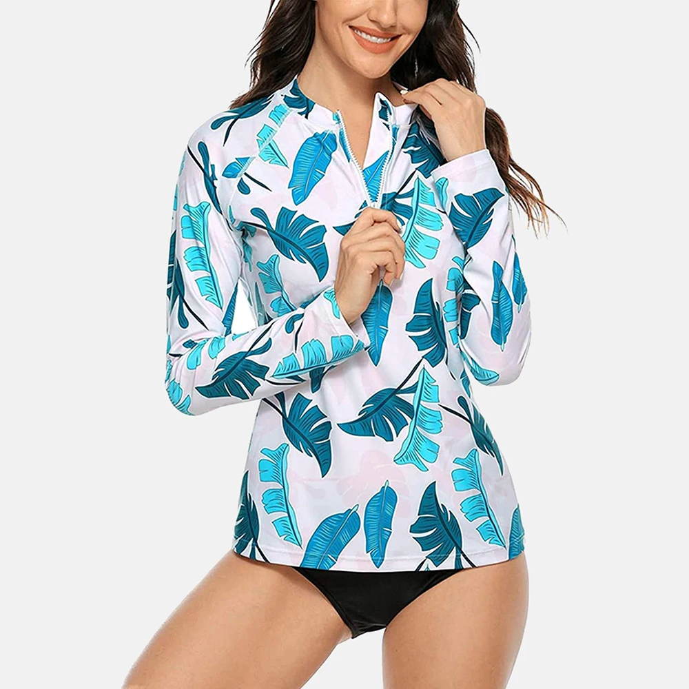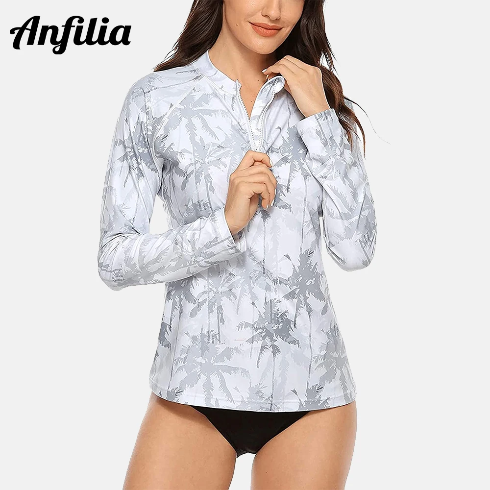 Женская рубашка для плавания Anfilia с длинными рукавами и молнией спереди с защитой от солнца UPF 50 + верх для серфинга