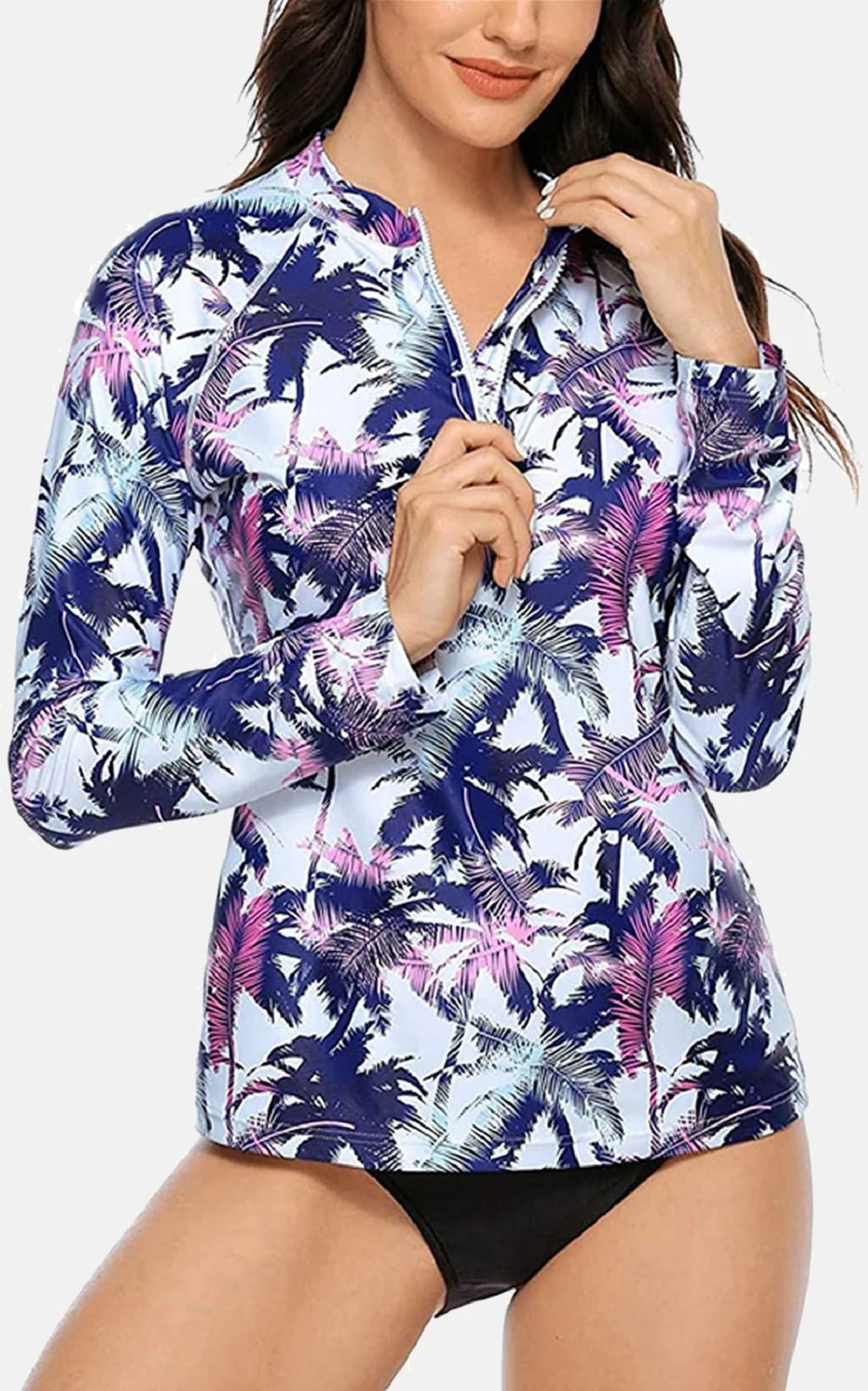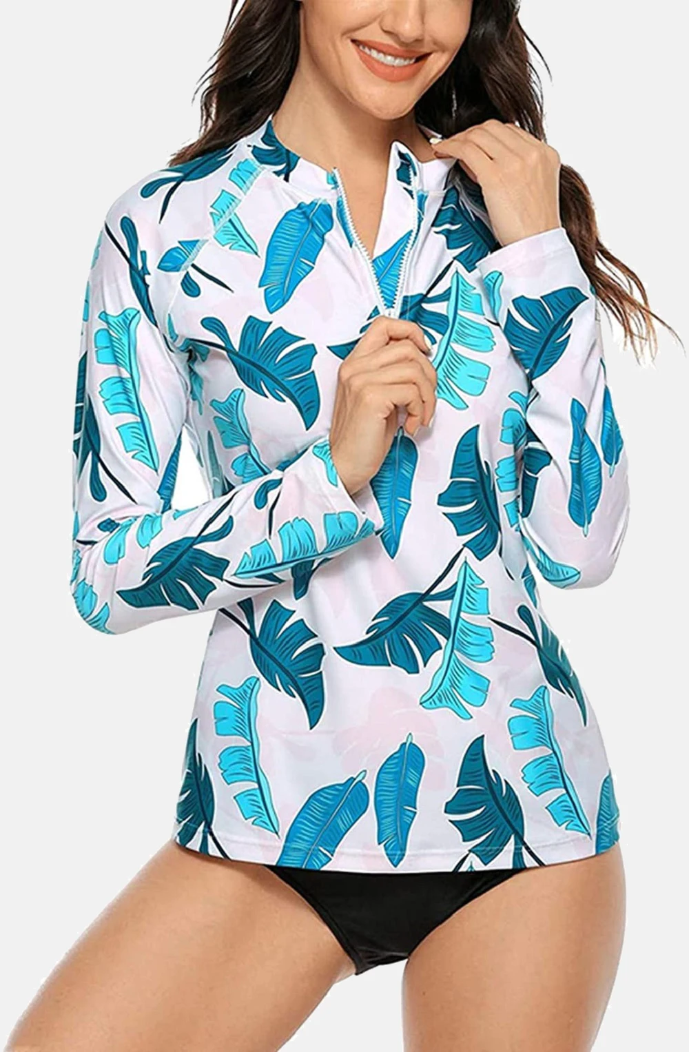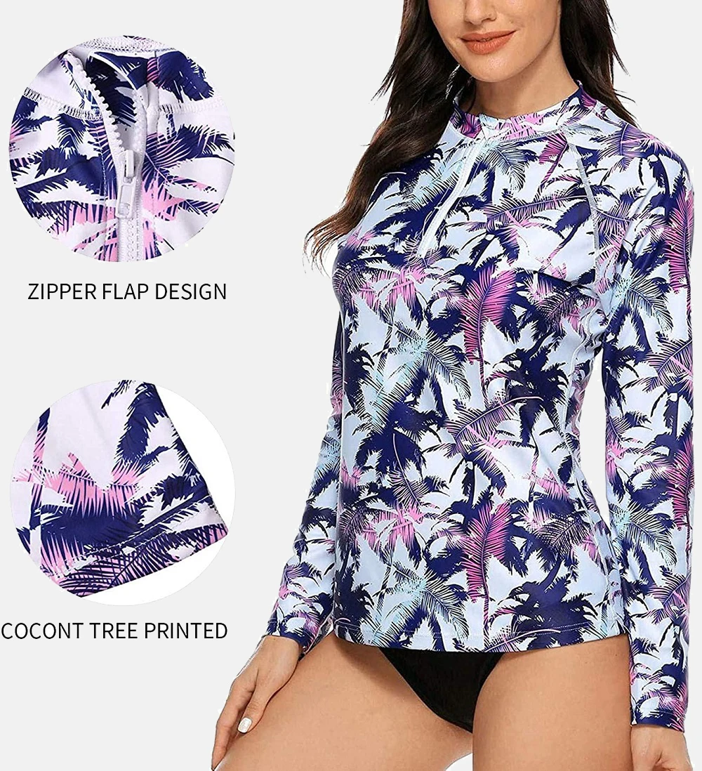 Женская рубашка для плавания Anfilia с длинными рукавами и молнией спереди с защитой от солнца UPF 50 + верх для серфинга