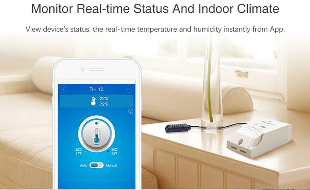 Sonoff TH10/ TH16 удаленный температурный монитор и беспроводной монитор влажности WiFi переключатель поддерживает настройку диапазона температуры или влажности. Когда температура или влажность вашего дома попадает в диапазон, он автоматически включится или выключится подключенные устройства.