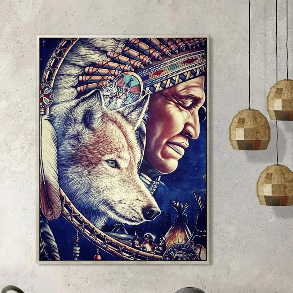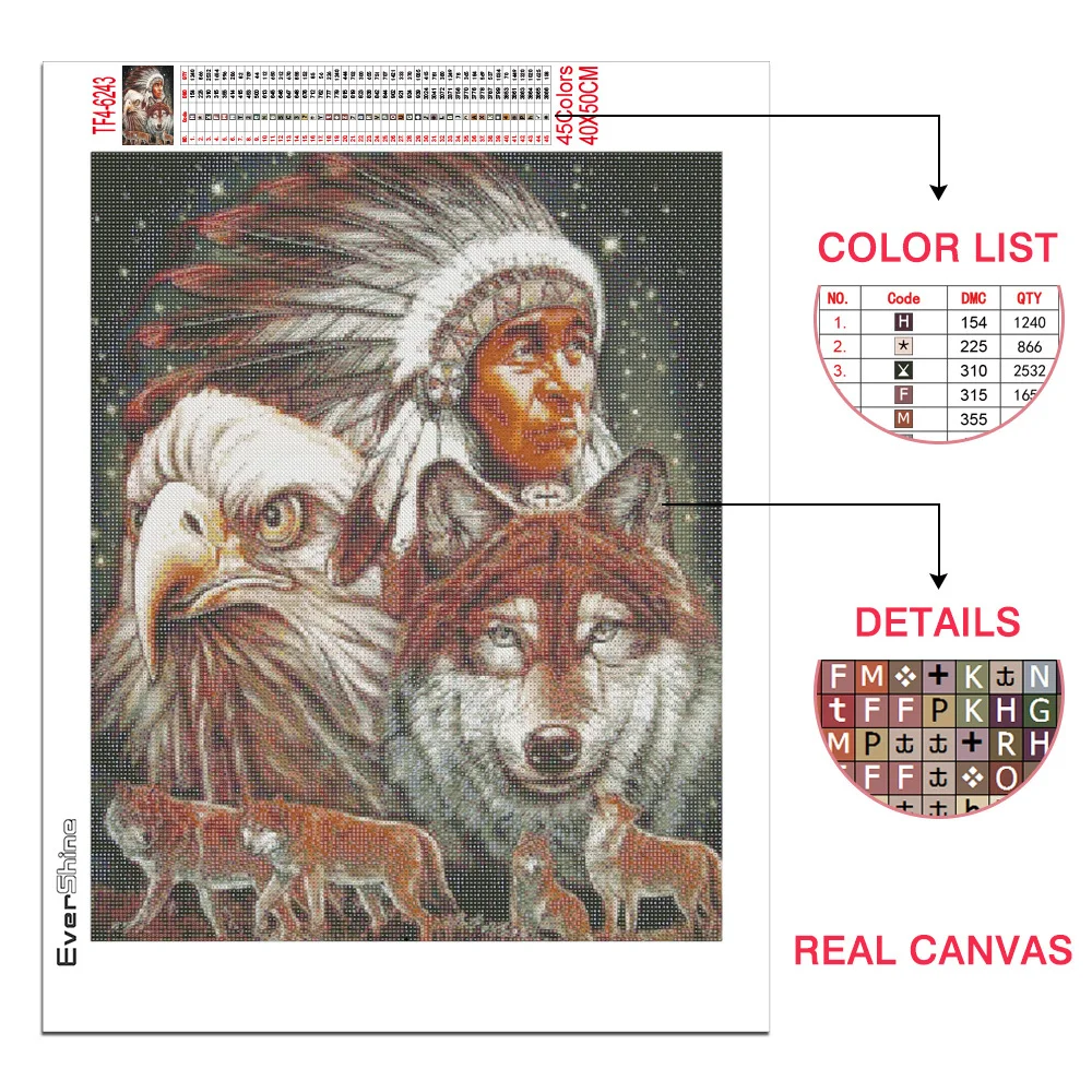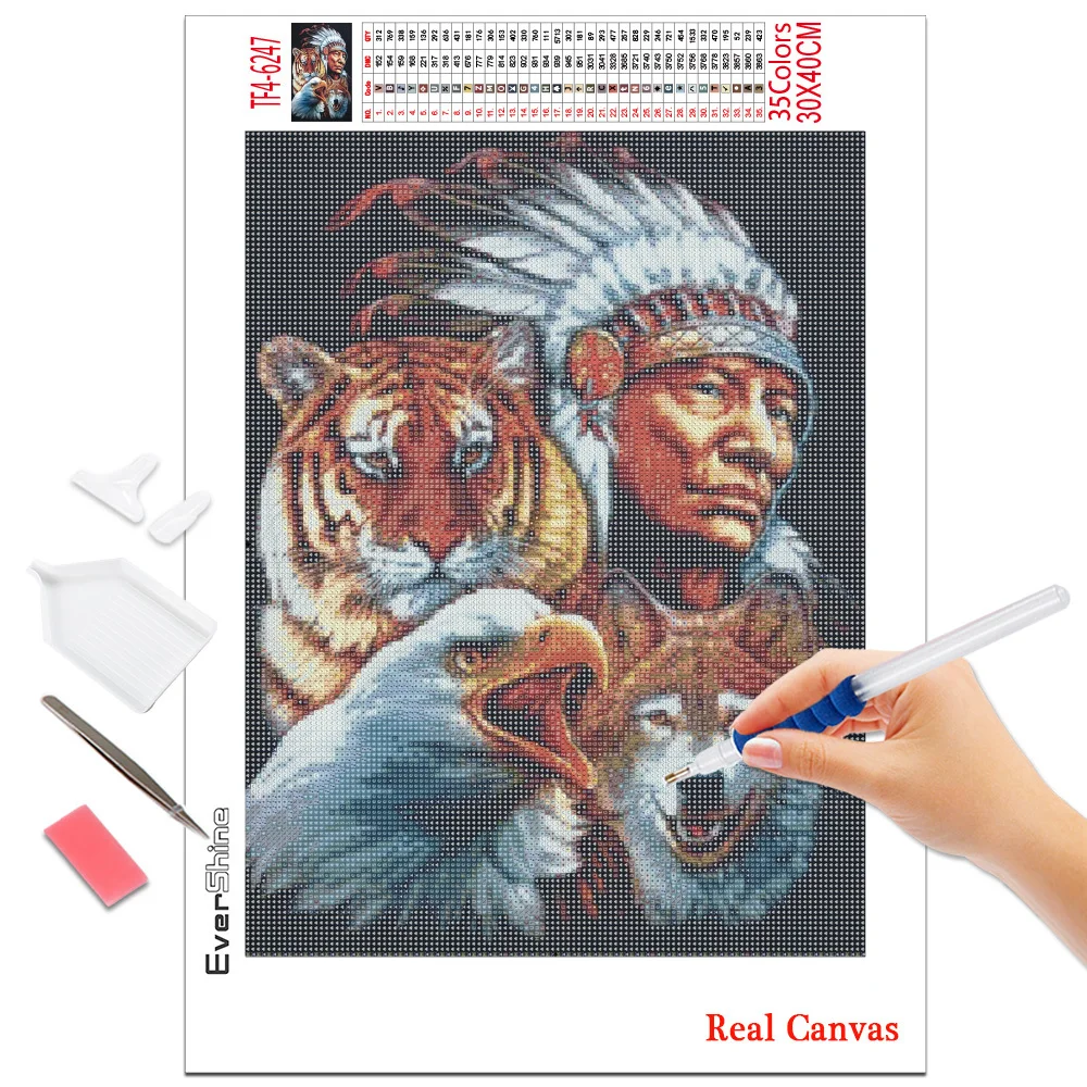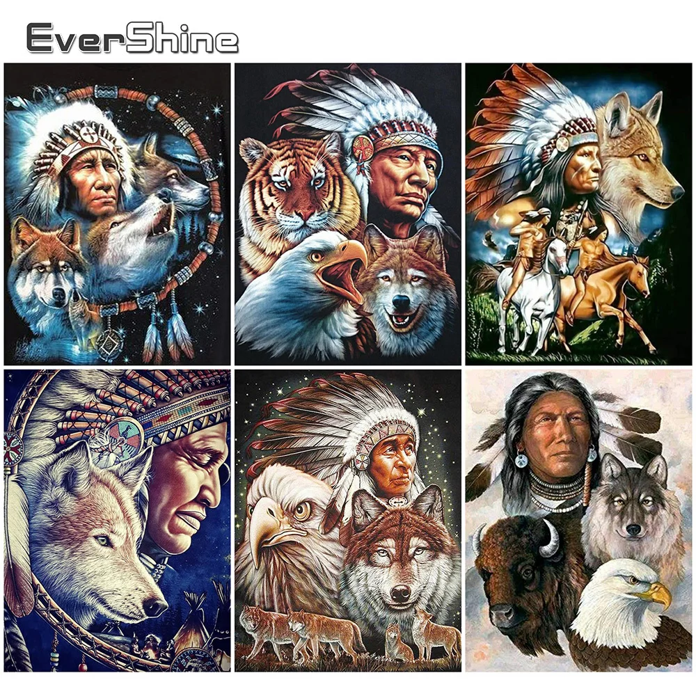 Evershine Алмазная вышивка Волк картина стразы полная площадь Круглый Алмазная мозаика животное Алмазная Живопись Индейцы Подарки ручной работы