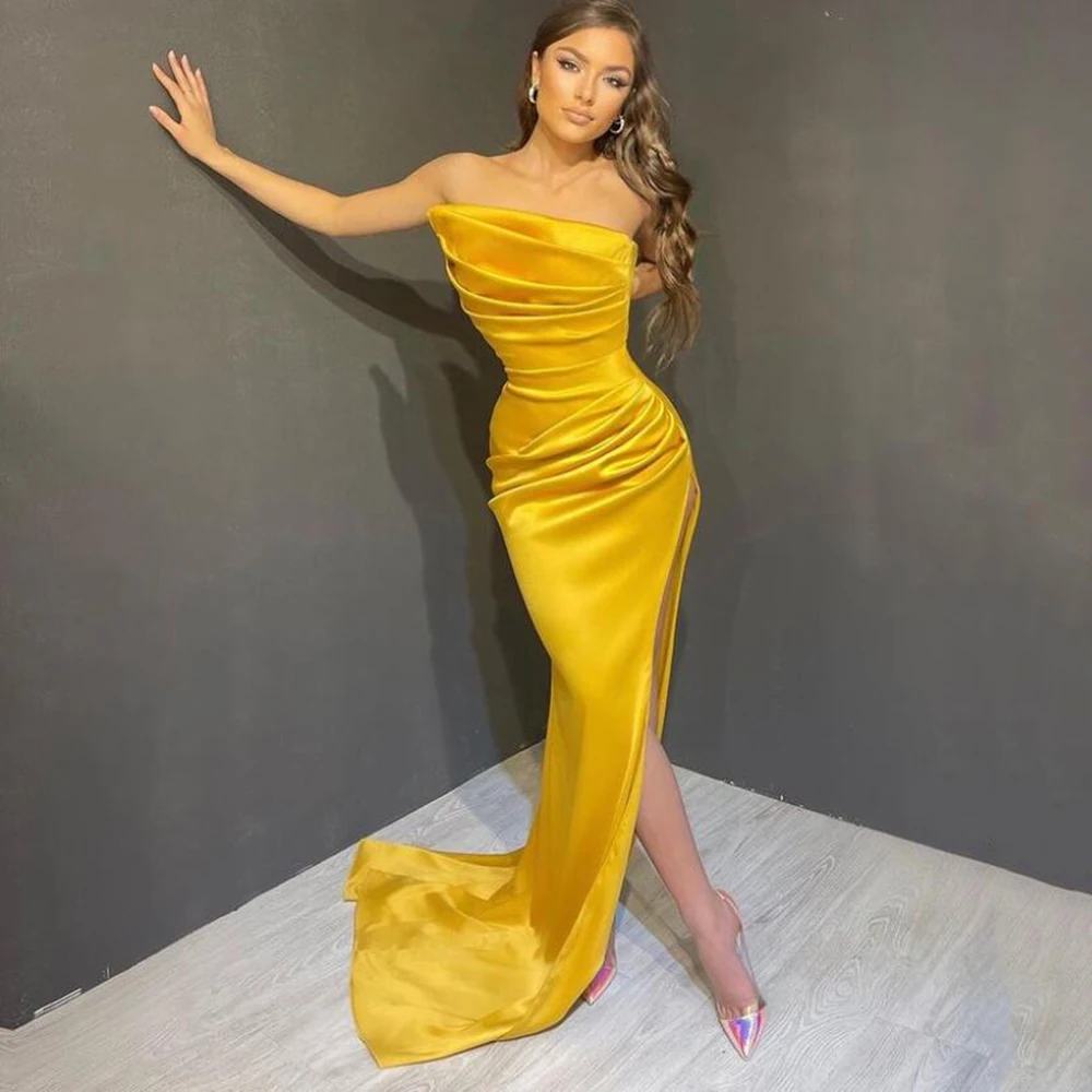Шелковое Вечернее Платье Sevintage с юбкой годе, вечернее платье без рукавов, плиссированное платье для выпускного вечера с разрезом, строгие платья на заказ