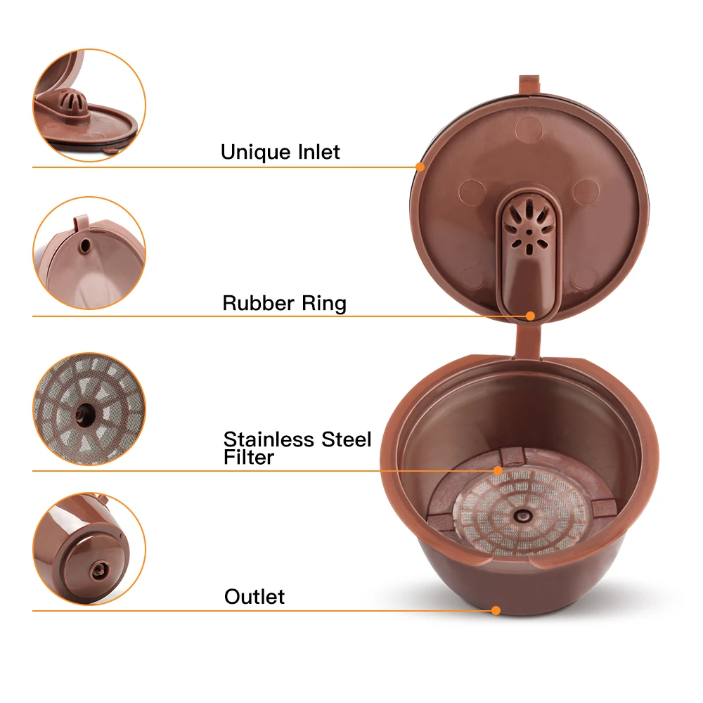 Особенности: Многоразовые фильтровальные чаши, экономя ваши деньги, когда вы выбираете многоразовый фильтр для кофе. Экономичный, легко заваривать кофе fave, крышка может открываться для легкого наполнения и очистки. Идеально подходит для кофе, Dolce Gusto