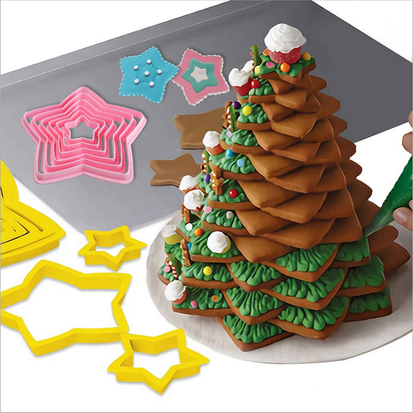 6 шт.компл. форма для печенья в виде рождественской елки, форма в форме звезд, форма для помадки, печенья, формы для выпечки, 3D инструменты для украшения тортов, формы для выпечки