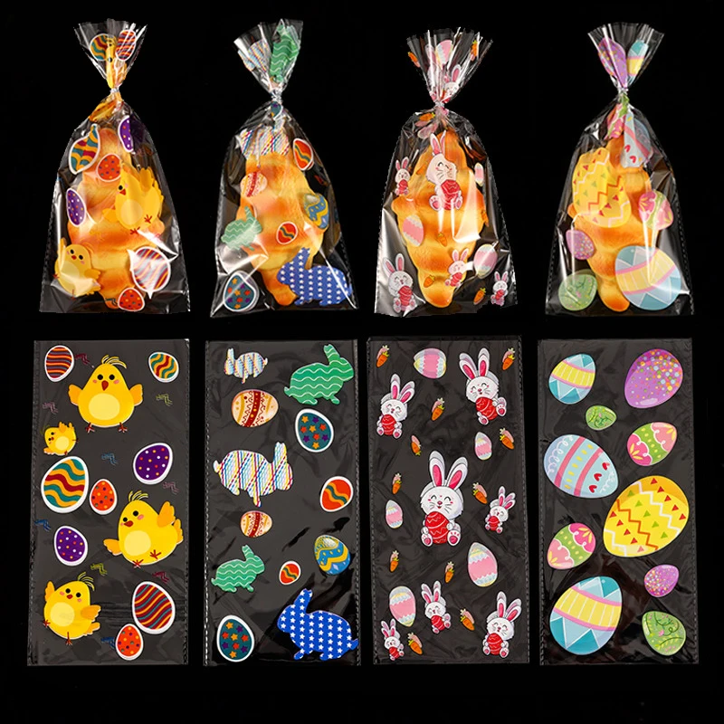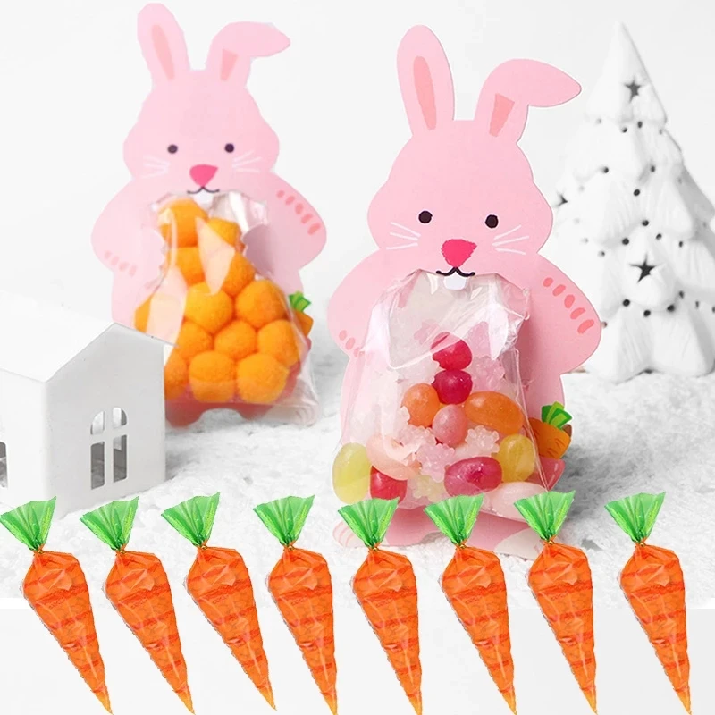Мешочек для конфет в виде кролика, пасхальные украшения, Подарочный пакет, с принтом кролика, яйца, моркови, целлофановые пакеты, упаковочные пакеты для выпечки, для пасхальвечерние НКИ