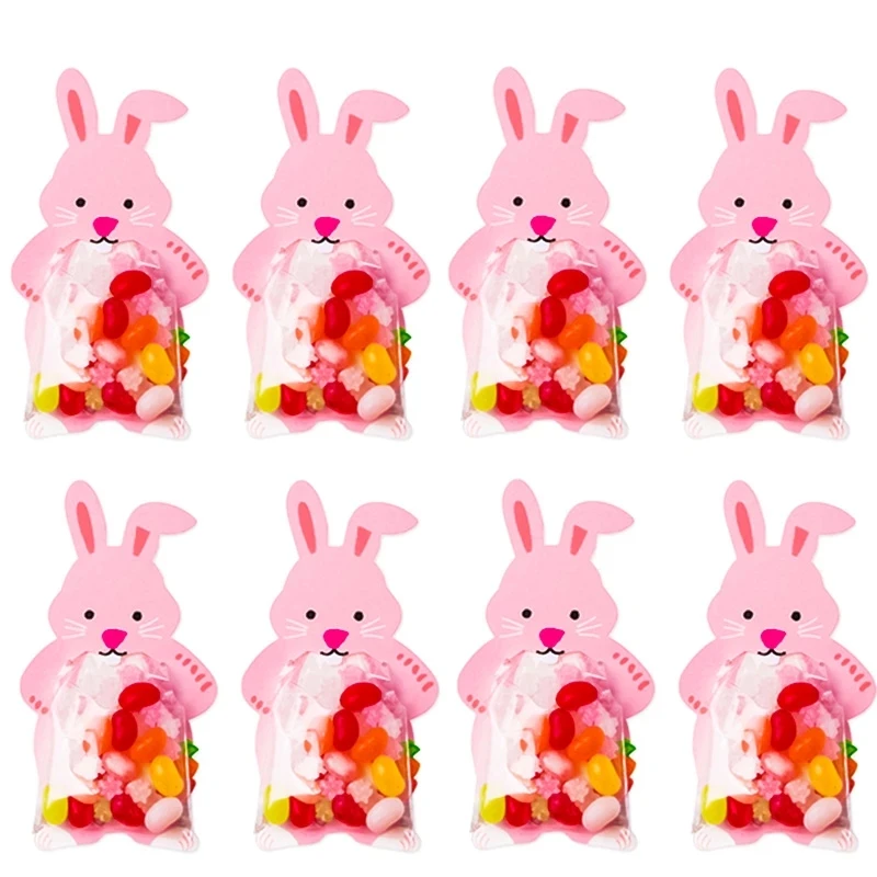 10 шт., мешочки для печенья с изображением розового кролика конусны...