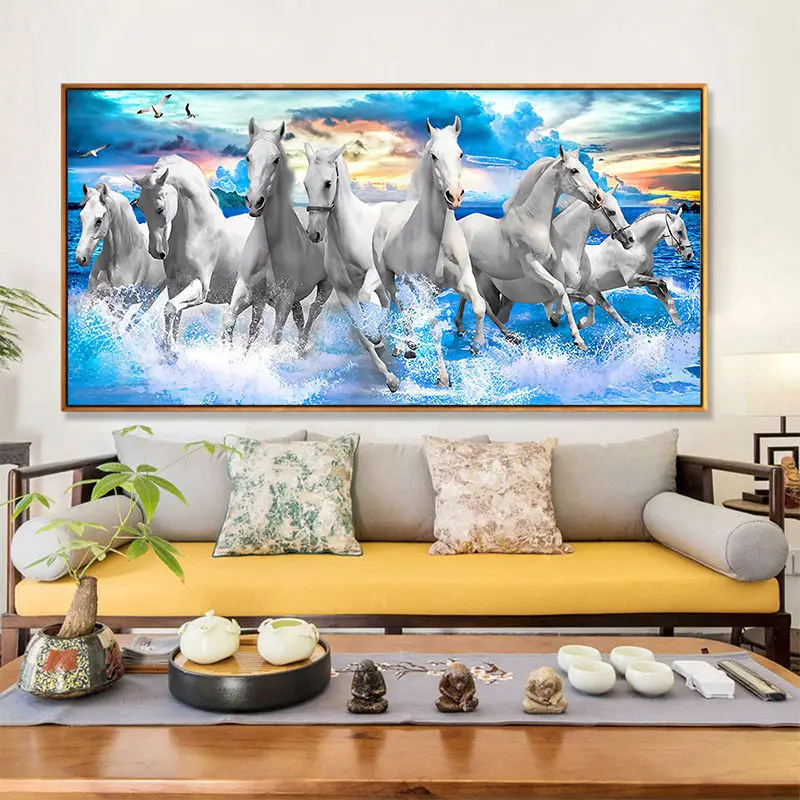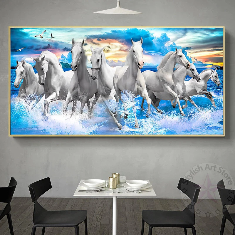 Современные плакаты семь бегущих белых лошадей животные Картина на холсте принты пейзаж настенные картины для комнаты домашний декор квадраты