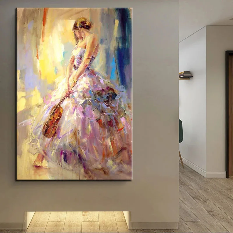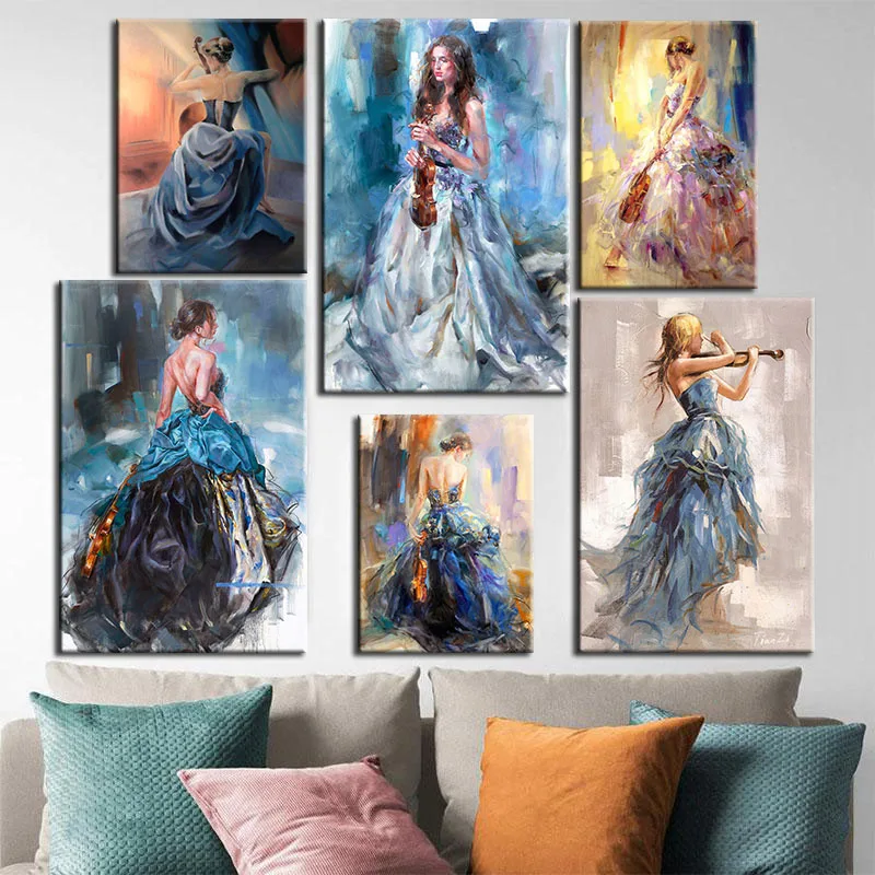 Модная современная абстрактная девушка играющая скрипка Красочная картина маслом на холсте настенные картины постер Куадрос гостиная домашний декор