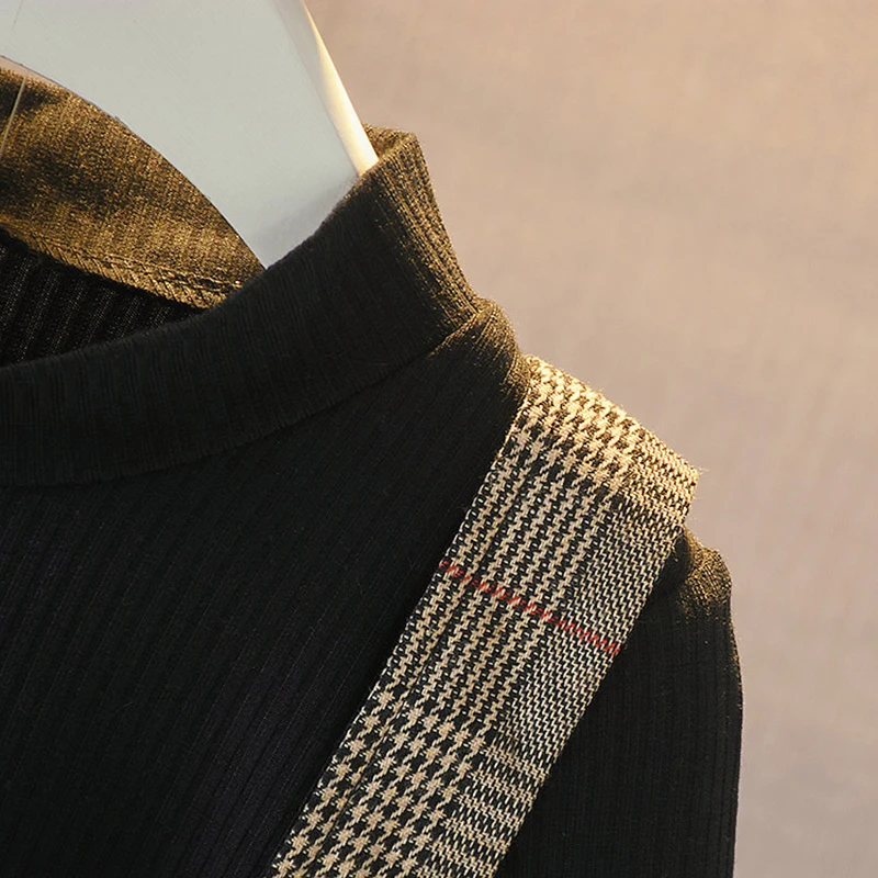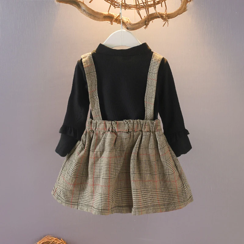 Детское повседневное клетчатое платье с имитацией двух предметов для девочек, платье с длинным рукавом, милое платье на весну и осень, детские платья, платье принцессы