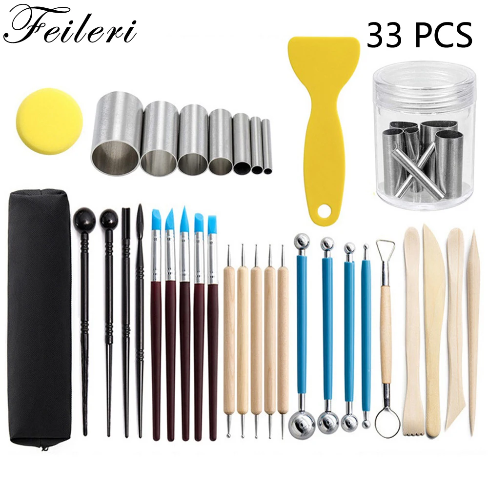 33 шт.компл. керамические инструменты, набор инструментов для формовки глины, сглаживающей, восковой резьбы, полимерной глины, инструменты для рукоделия