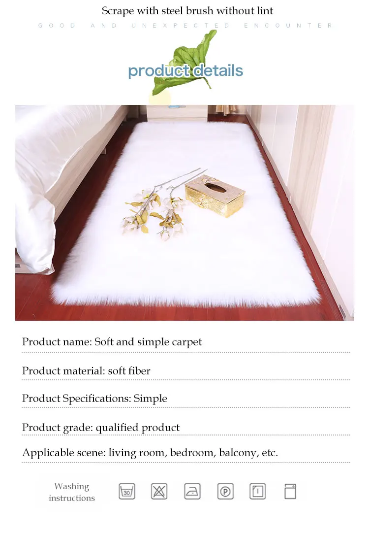 Материал: искусственная шерстьЦвет: 15 цветов на ваш выборРазмер: 30*30 см, 45*45 см, 40*60 см, 50*80 см, 60*90 см, 60*120 см, 60*180 см, 70*180 см, 80*180 см, 90*180 см, 80*200 см, 100*160 см, 120*120 см