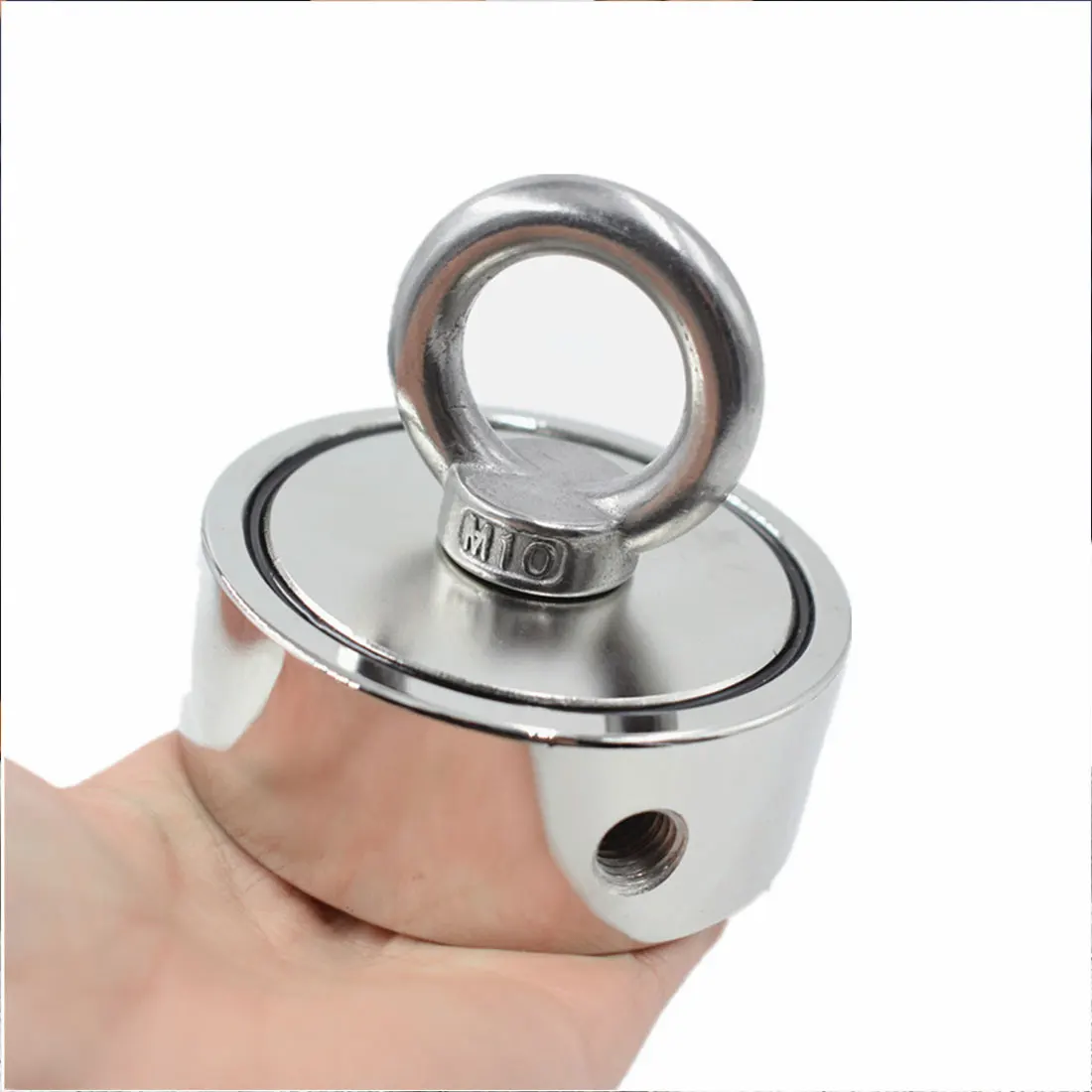 Особенности:1: толщина стали: чем тоньше сталь, тем меньше сила растяжения. Вертикальное магнитное натяжение получено на основе стальной пластины толщиной 30 мм2: штранг-прессования направление: чем больше штранг-прессования направление находится под углом 90 градусов, тем меньше штранг-прессования силы. Как правило, сила выдавливания в горизонтальном направлении составляет всего одну третью от силы в вертикальном направлении.3: положение притяжения: чем дальше от центра тяжести, тем меньше тяговая сила4: Кроме того, железные нити на магнитной поверхности также в определенной степени уменьшают тяговое усилие магнита5: магнит поглощает только железо, черные металлы и никель и не поглощает золото, серебро, медь, алюминий и его сплавы и нержавеющую сталь6: магнитная сила сосредоточена на дне рыболовного магнита, и на других поверхностях практически нет магнитной силы7: он в основном состоит из высококлассного Неодимового Магнита и стальной оболочки. Стальной корпус очень важен для усиления магнитной силы, он может концентрировать сильное магнитное поле на нижней части магнита8: Это увеличивает прочность магнита до более высокой прочности, чем обычные неодимовые магниты. В то же время стальная чашка может предотвратить царапины и поломки магнита во время процесса зажима и зажима.9: магнит предназначен для тяжелого и подводного использования10: это может помочь в ремонте потерянного оборудования, инструментов, рыболовных снастей и других черных объектов в глубоких водах, скважинах и пещерах11: он также очень подходит для магнитной рыбалки, подъема, подвешивания и поиска