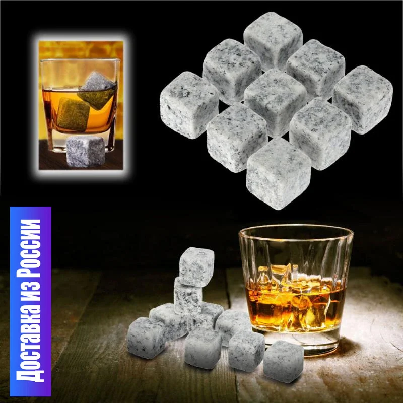 Камни для виски Кубики льда, виски, скотч, холодные гранитные камни, многоразовые, охлаждающее вино, чай, напитки 9 шт