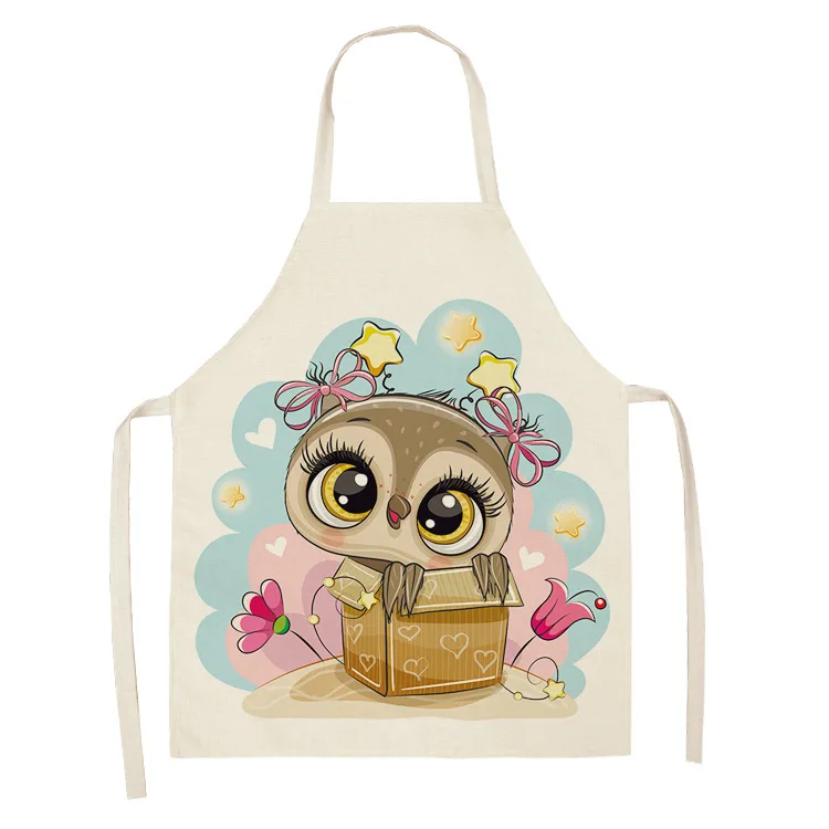 фартук для кухни для дома и кухни для парикмахеров Новый Льняной фартук с мультяшной совой, Детский фартук для родителей и детей, домашний фартук для готовки без рукавов, фартук для выпечки, инструмент для чистки