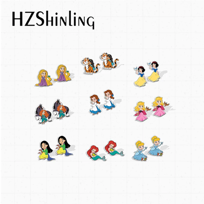 Новое поступление 2021, серьги-гвоздики из эпоксидной смолы и акрила с изображением маленьких принцесс и животных
