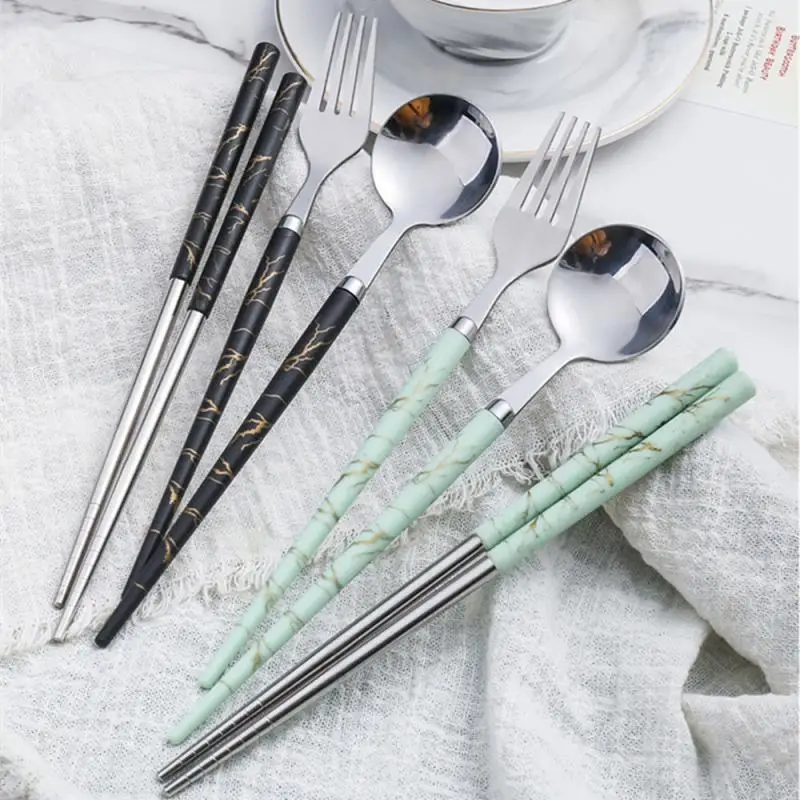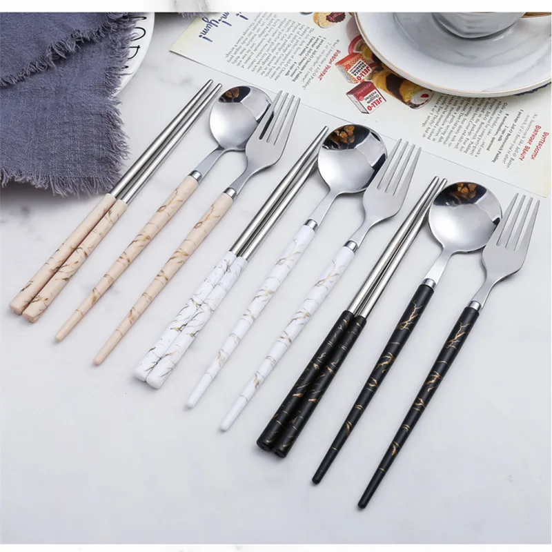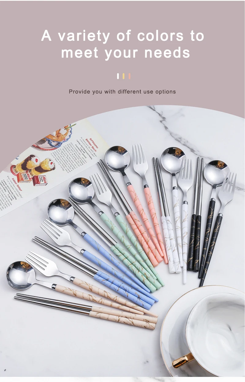 Набор посуды из нержавеющей стали с мраморной ручкой