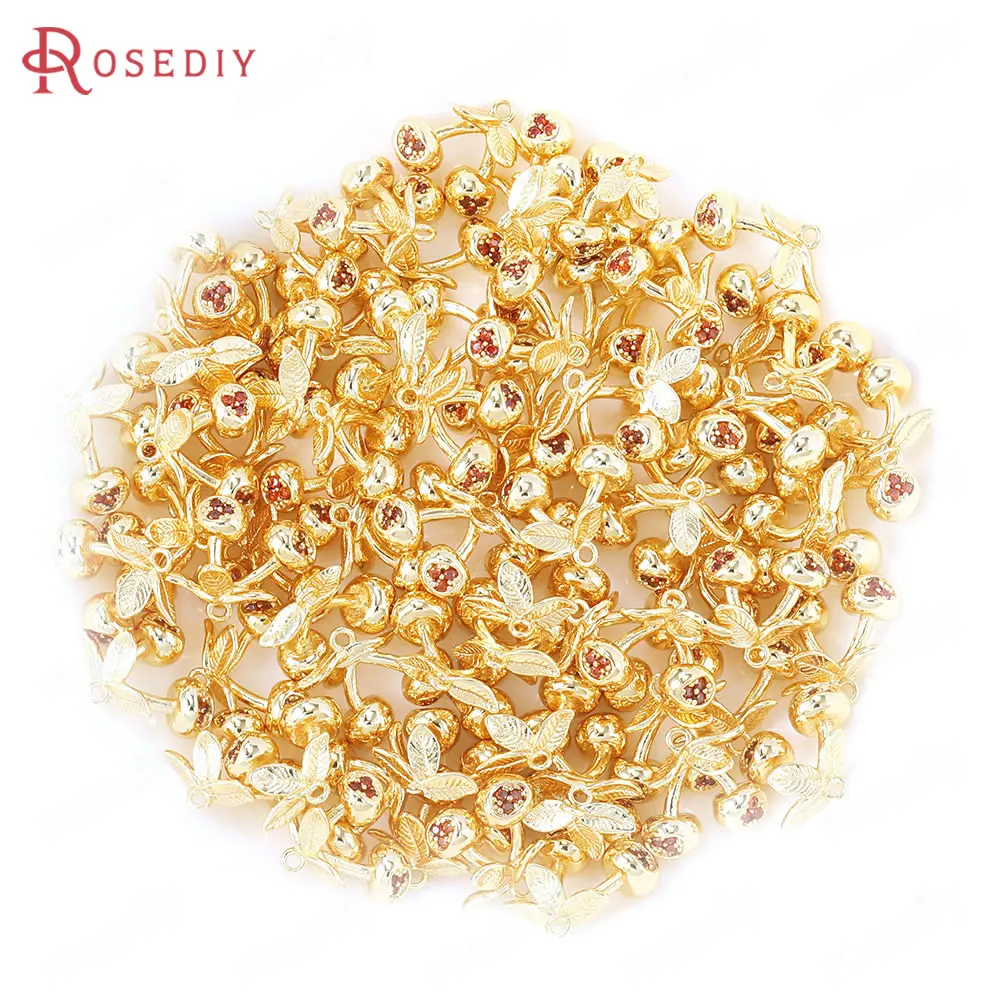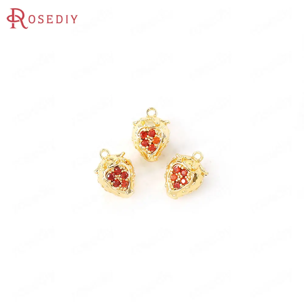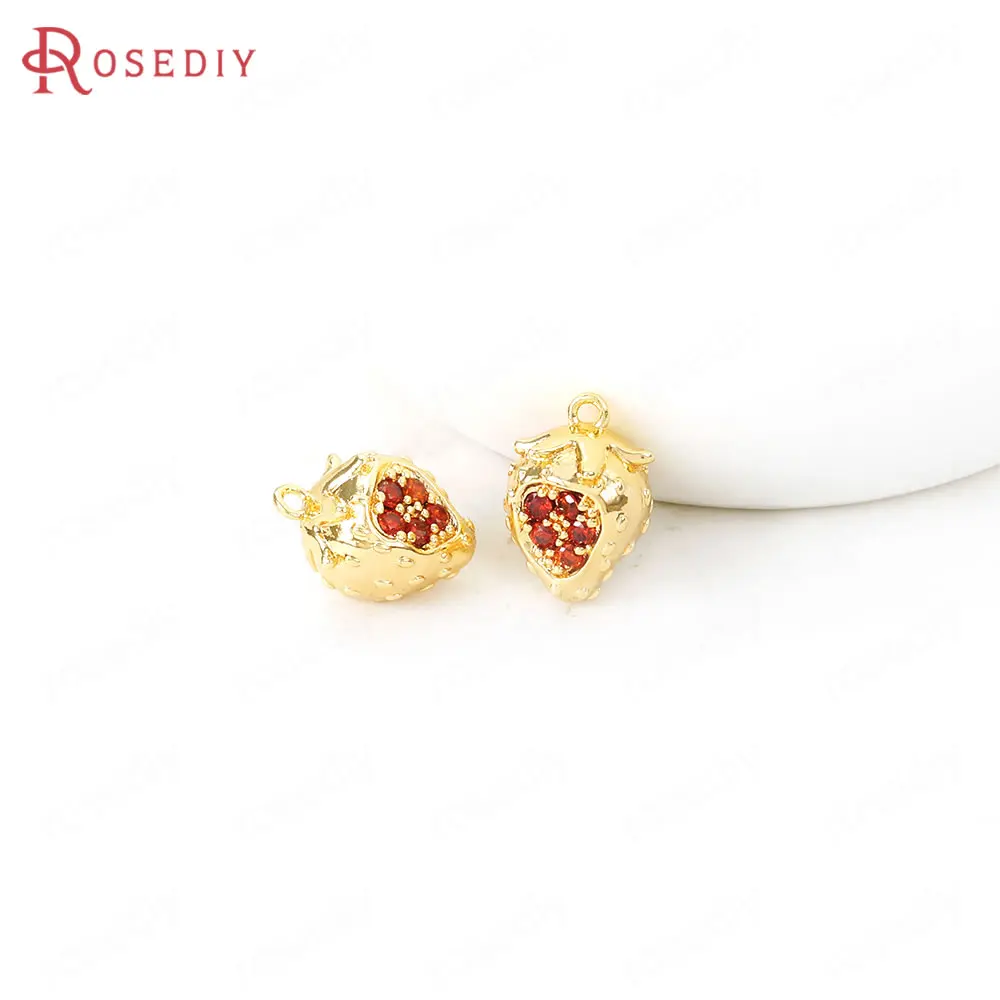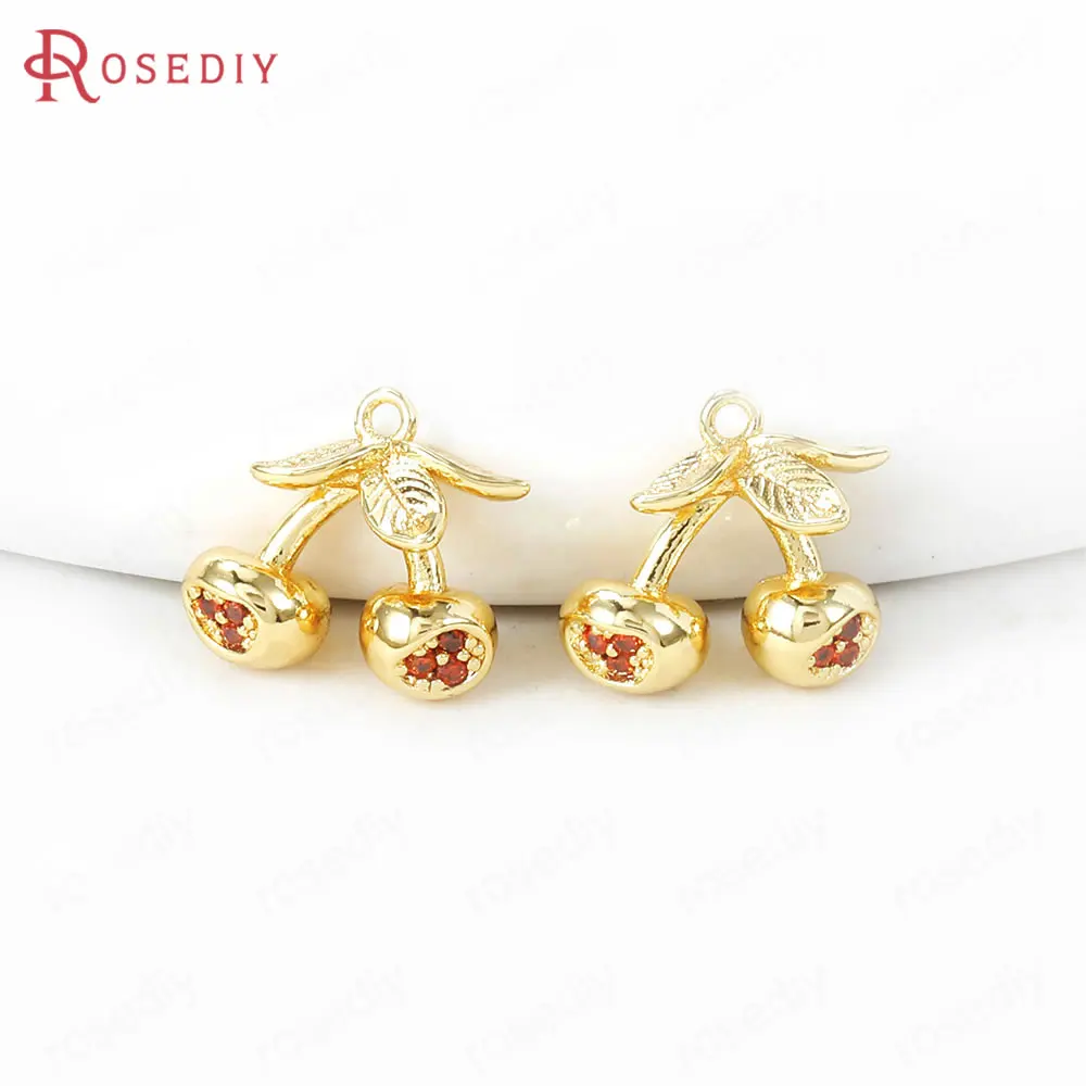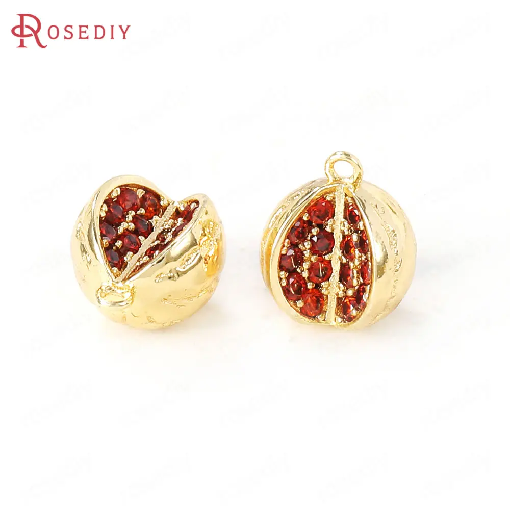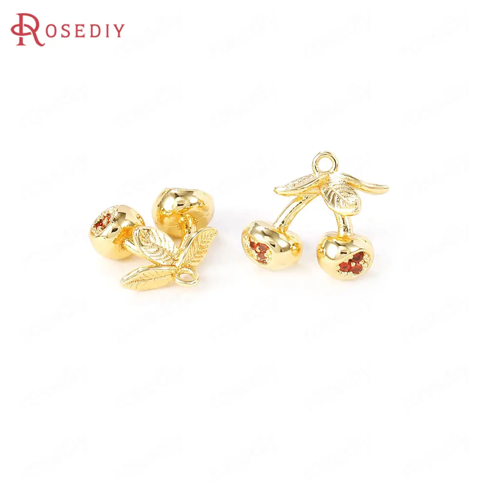 Латунные подвески и циркониевые подвески в виде фруктов, 4 шт., 24 к золота, материалы для изготовления ювелирных изделий, ожерелья, серьги, фурнитура сделай сам