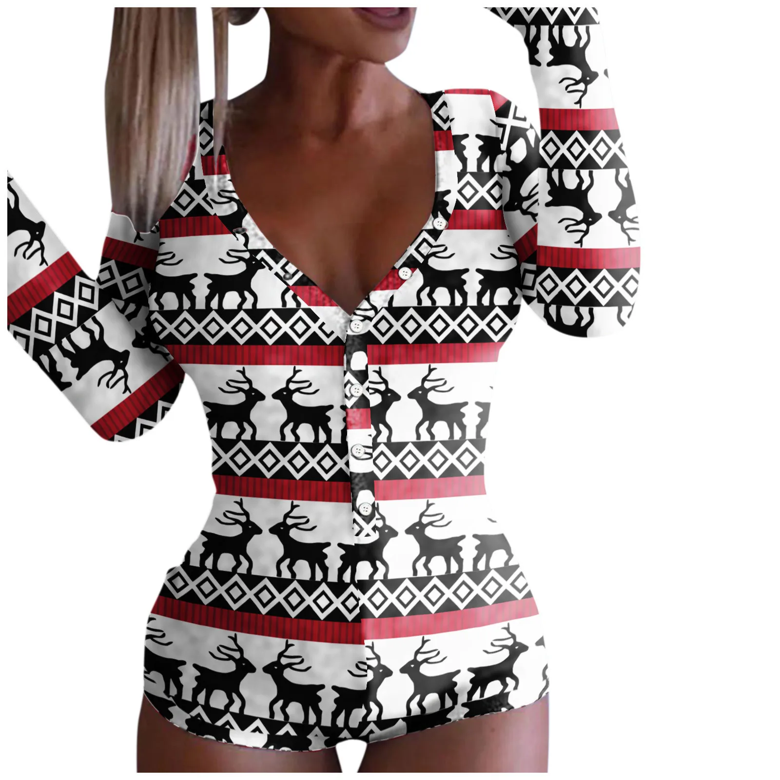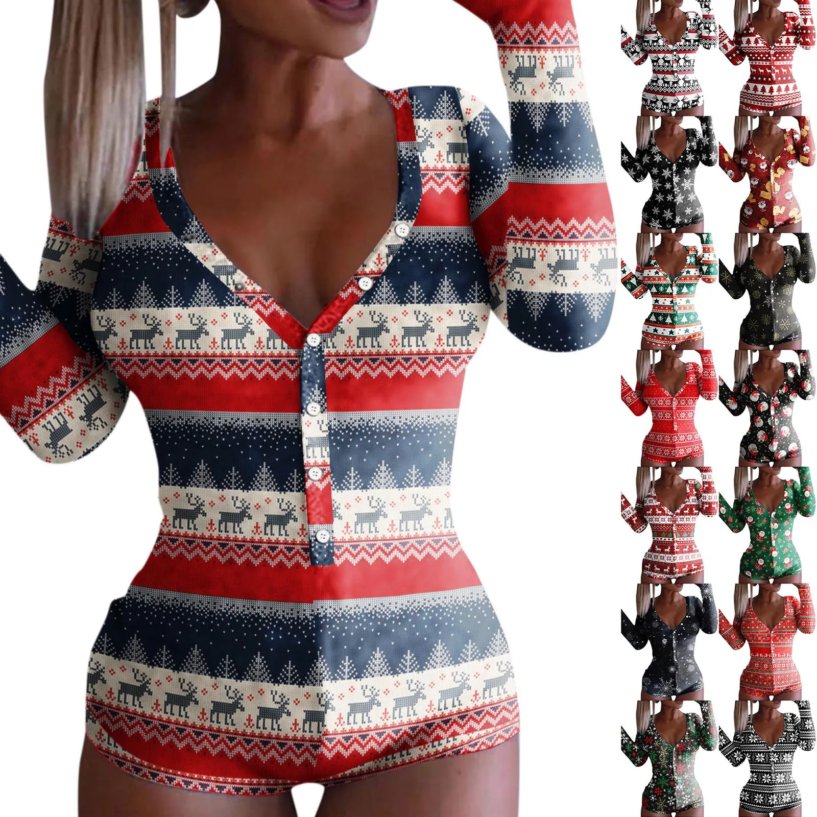 Новый женский комбинезон с рождественским принтом, пикантная Ночная одежда с длинным рукавом, комбинезон, боди, комбинезон для взрослых, Прямая поставка, пижамы