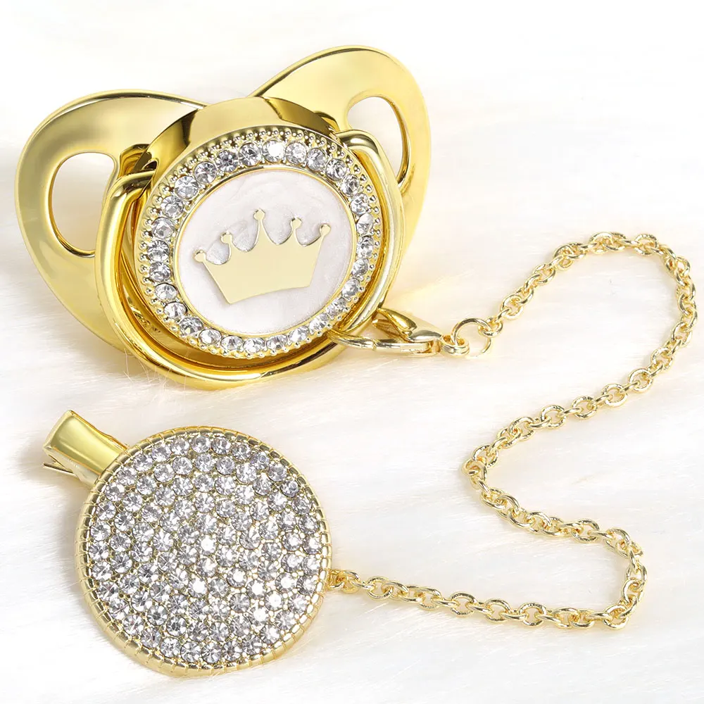 Роскошная детская соска-пустышка с короной и зажимами, блестящая со...