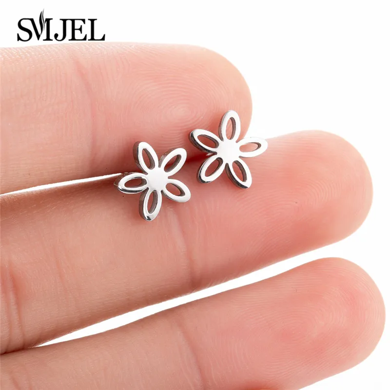 Женские серьги-гвоздики SMJEL, маленькие серьги из нержавеющей стал...