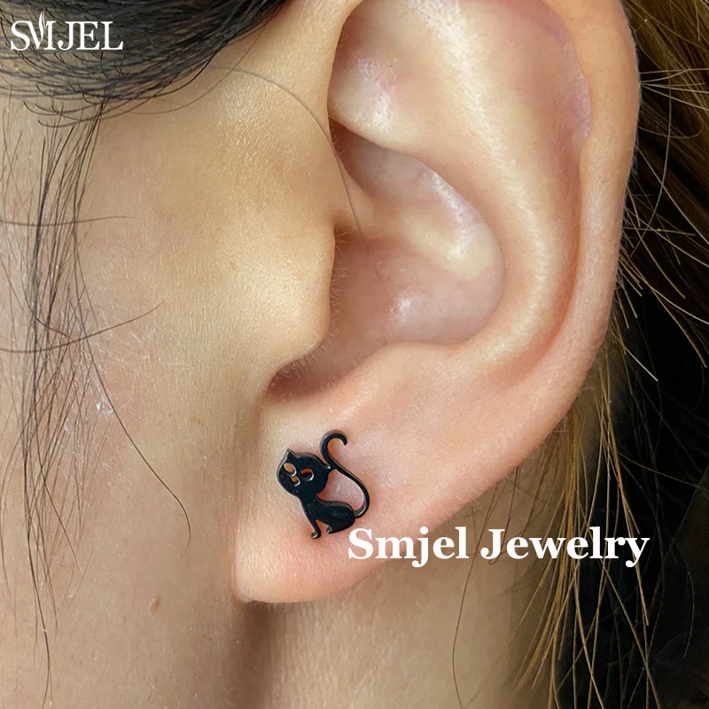 Милые кошачьи серьги из нержавеющей стали в Корейском стиле для жен...