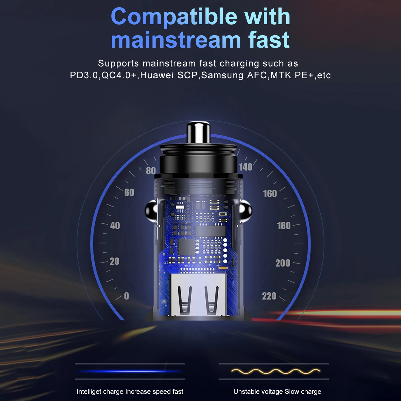 Автомобильное зарядное устройство Kebidu Mini с двумя USB-портами QC4.0 QC3.0 PD3.0 SCP быстрое зарядное устройство 5A 30W Быстрое Автомобильное зарядное устройство для iPhone Xiaomi