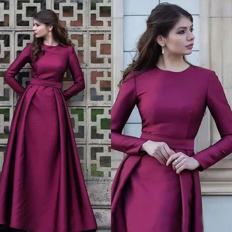 Современные Простые фиолетовые Вечерние платья трапециевидного силуэта с длинным рукавом для матери невесты атласные свадебные платья с круглым вырезом vestidos de noite