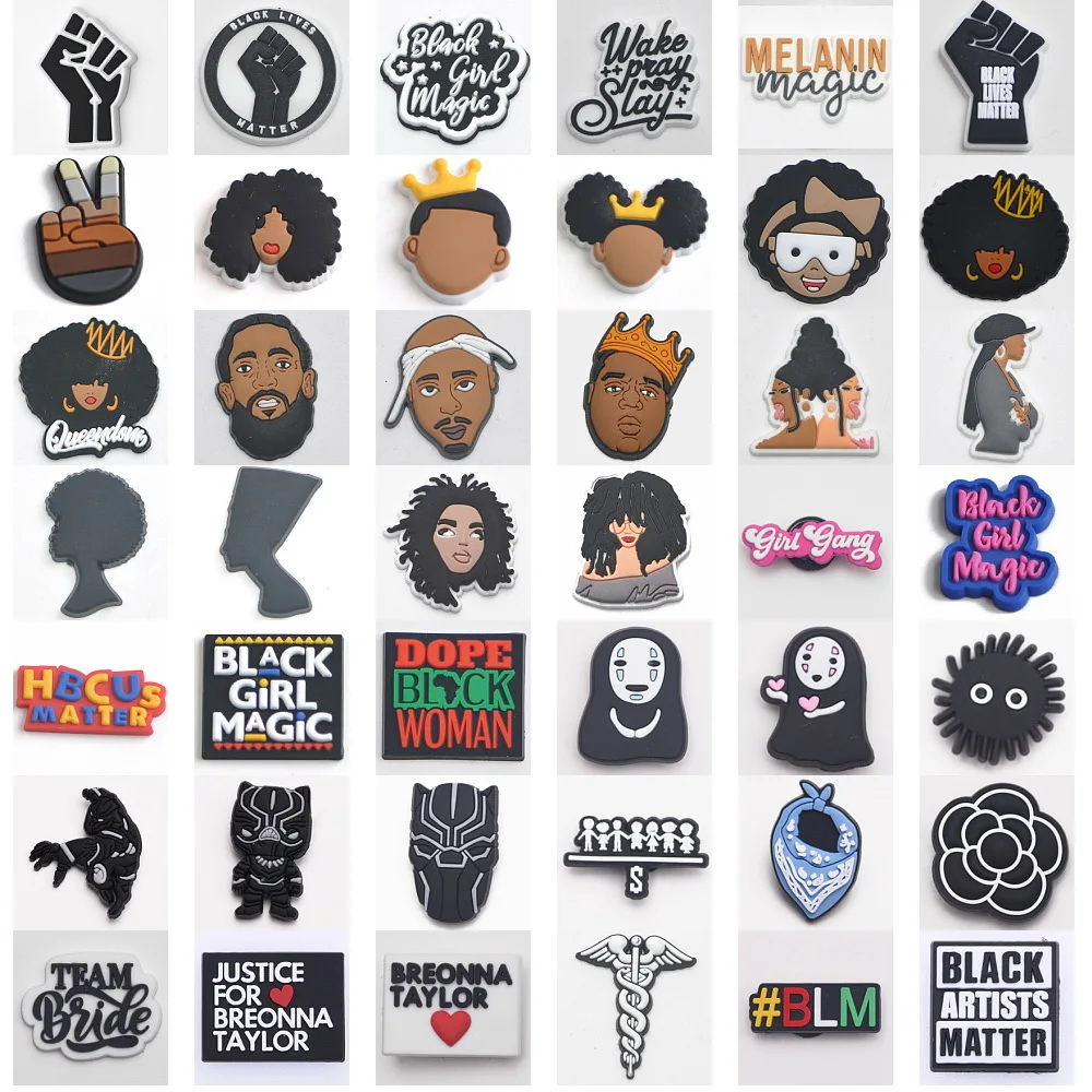 Черные Подвески для обуви для девочек, Черная пантера, подвески из ПВХ, украшения-Кроксы, помада, Кроксы, пряжка для обуви для детей, подарки на вечеринку, 1 шт.