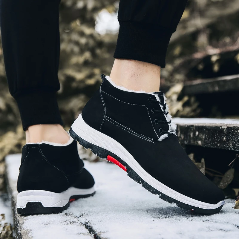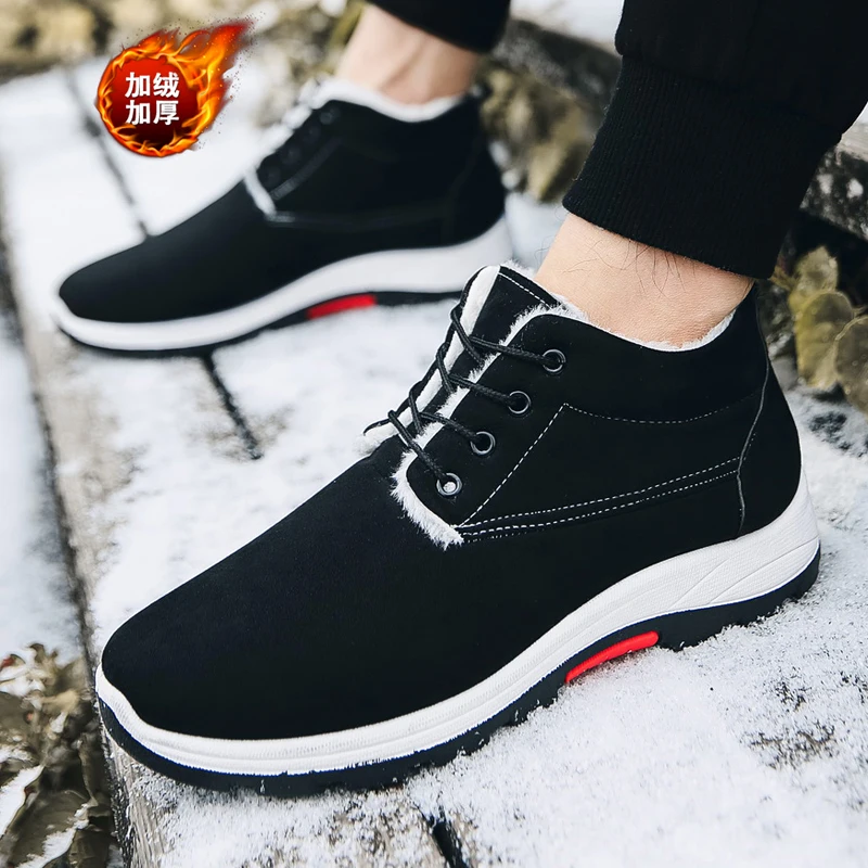 Кроссовки мужские зима кроссовки меху черные замшевые кроссовки с Мужские подкладкой, легкие спортивные туфли Повседневная обувь 2021 бархатной