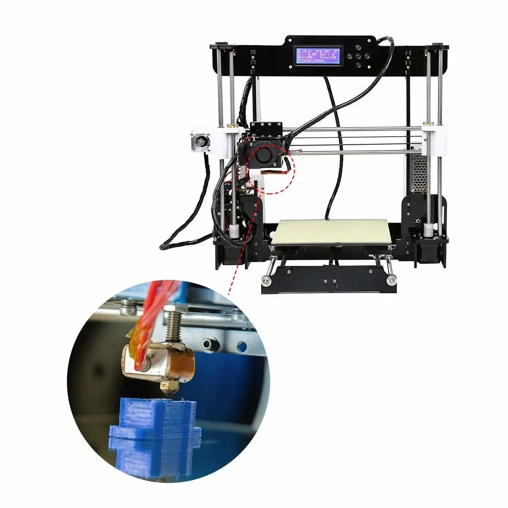 Набор для замены DIY, специально для принтера Anet A2 и A8. Предварительно смонтированный Термистор, 100K ohm, 1,1 м в длину. 12V 40W патронного нагревателя. Алюминиевый нагревательный блок. 0,4 мм выходное сопло. 6 мм Диаметр внешней резьбы горло экструдера, 30 мм (длина), костюмы для 1,75 мм нити. Характеристики: -- NTC3950 термистор Материал: высокая температура. Тефлон (200 ℃) Сопротивление: при 25 °C = 100K Ом Длина кабеля: прибл. 1,1 м Диапазон рабочих температур: -40 ℃ ~ + 300 ℃. Горло экструдера Материал: Нержавеющая сталь и тефлоновое Вход Диаметр: 1,75 мм Длина: 30 мм с наружной резьбой Диаметр: 6 мм. Сопло Материал: латунь Вход Диаметр: 1,75 мм & 3 мм Выход Диаметр: 0,4 мм. Материал нагревателя: нержавеющая сталь Напряжение: 12 В мощность: 40 Вт.