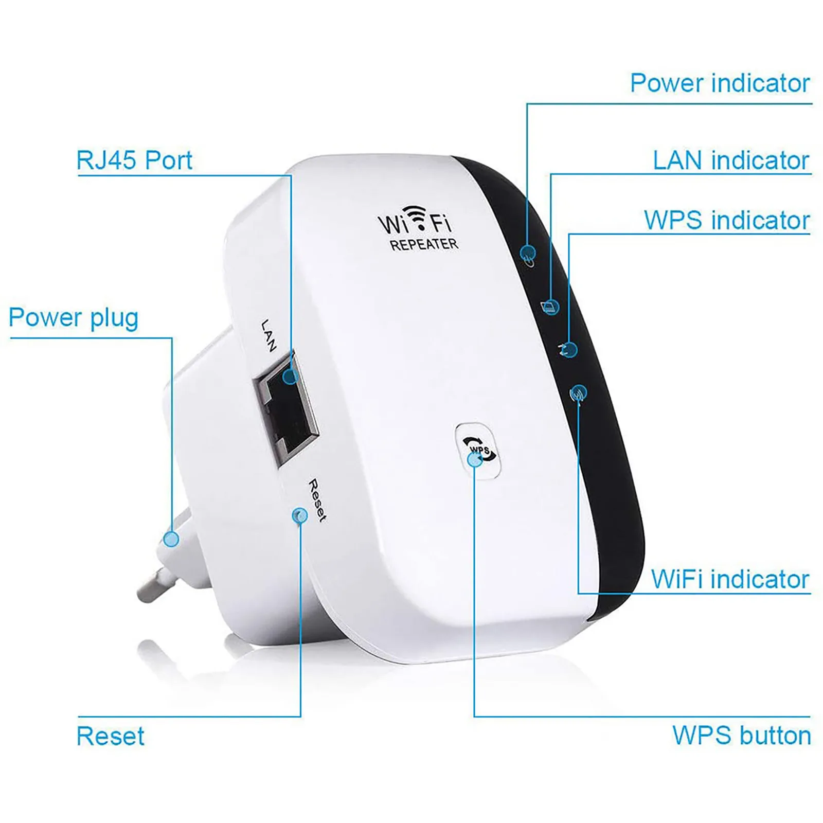 Универсальная совместимость: WiFi booster Работает с любым маршрутизатором или шлюзом. Предлагает 4 смарт-индикатора сигнала, чтобы помочь вам найти лучшее место для расширения сети Wi-Fi.