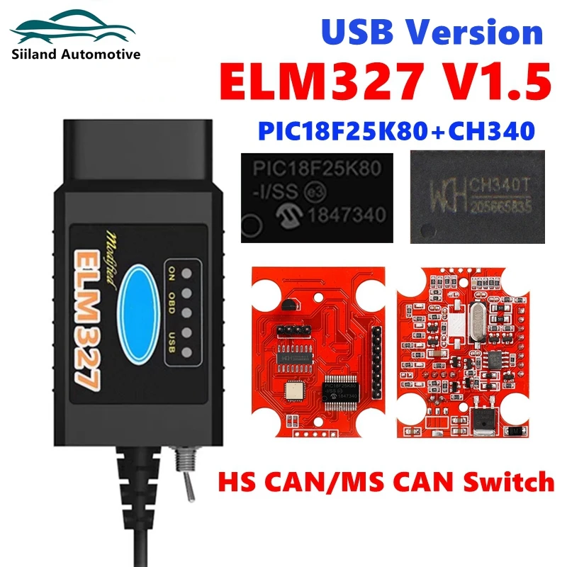 USB ELM327 V1.5 HS CANMS может переключаться с чипом PIC18F25K80 FTDI для Ford Forscan ELM 327 1,5 OBD2 автомобильный считыватель кодов, USB адаптер