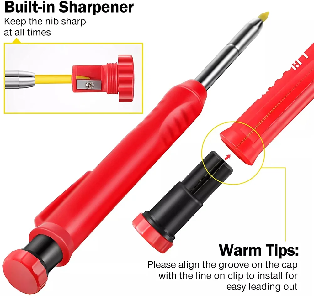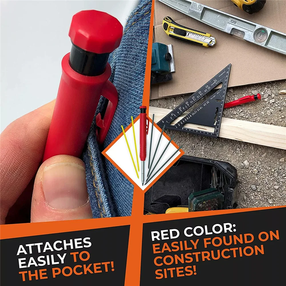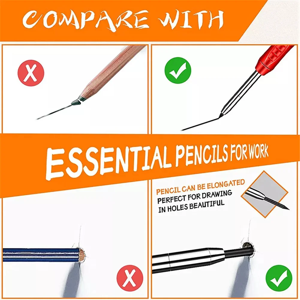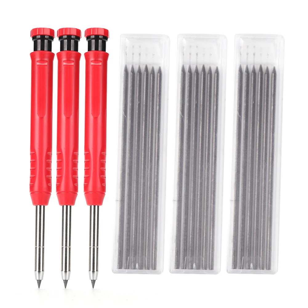 Набор карандашей для столярных работ с 18 стержнями, 3 шт., встроенная точилка, механический маркер с глубоким отверстием, инструмент для маркировки