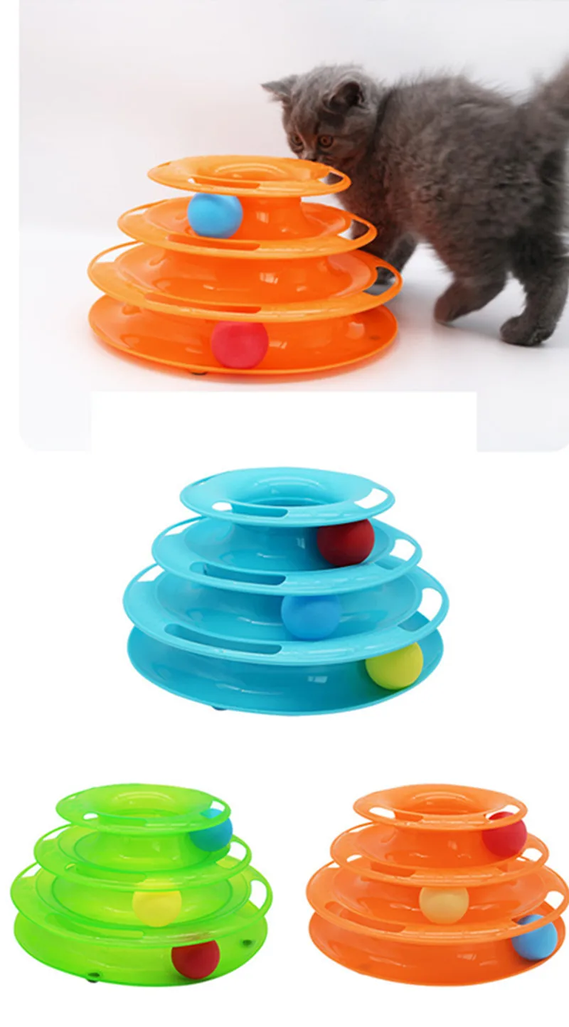 Игрушка-головоломка для кошек, 3 колеса, Интерактивная игровая пластина, игрушка для кошек, тренировочный трек, мяч, вращающийся стол, космическая башня
