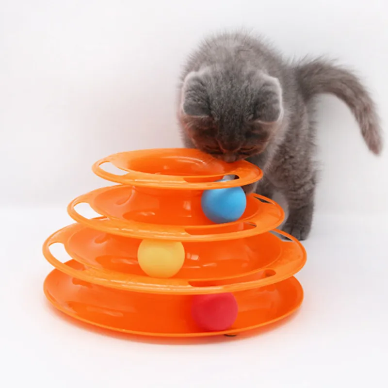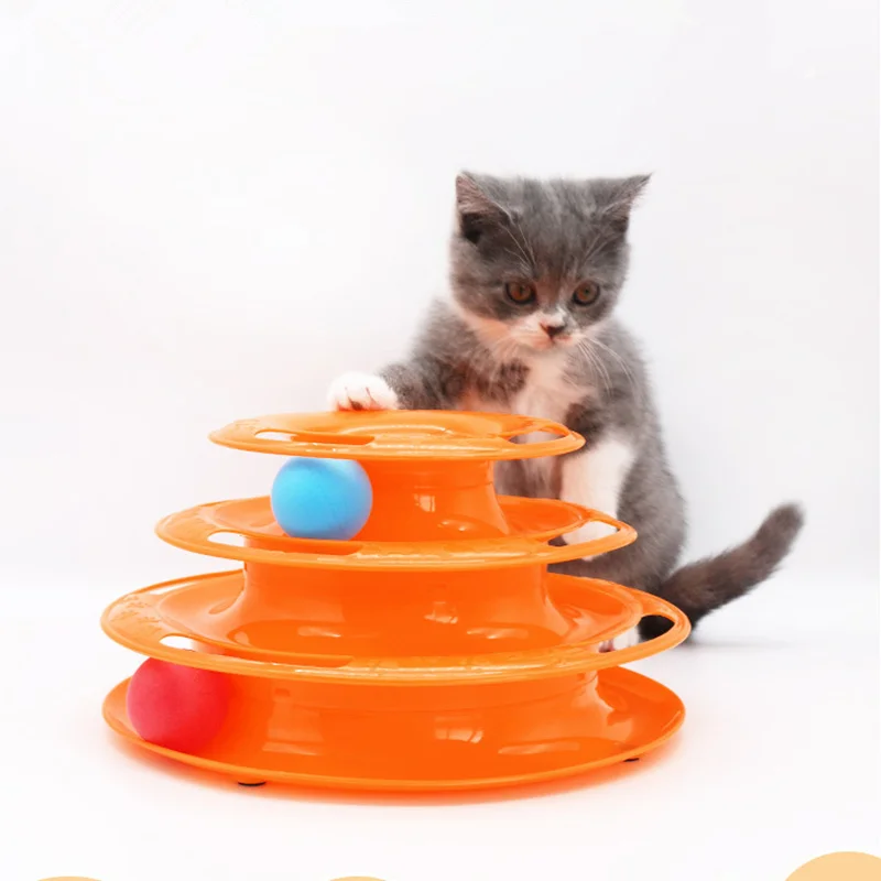 Головоломка для кошек, трехколесная Интерактивная игровая тарелка, игрушка для домашних животных, тренировочный трек с мячом, вращающийся стол, космическая башня