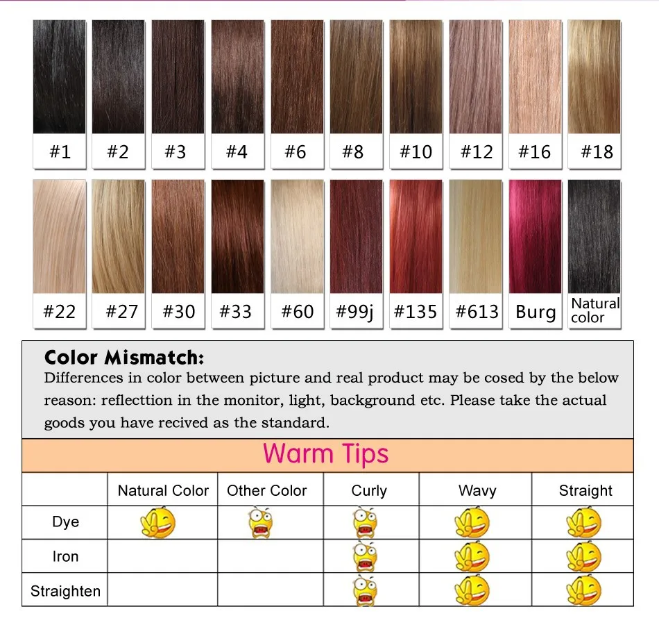 Естественный цвет #1 # 1b #2 или цвет Picutre. Если вы хотите другие цвета, пожалуйста, свяжитесь со мной